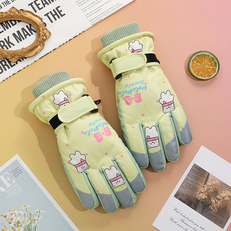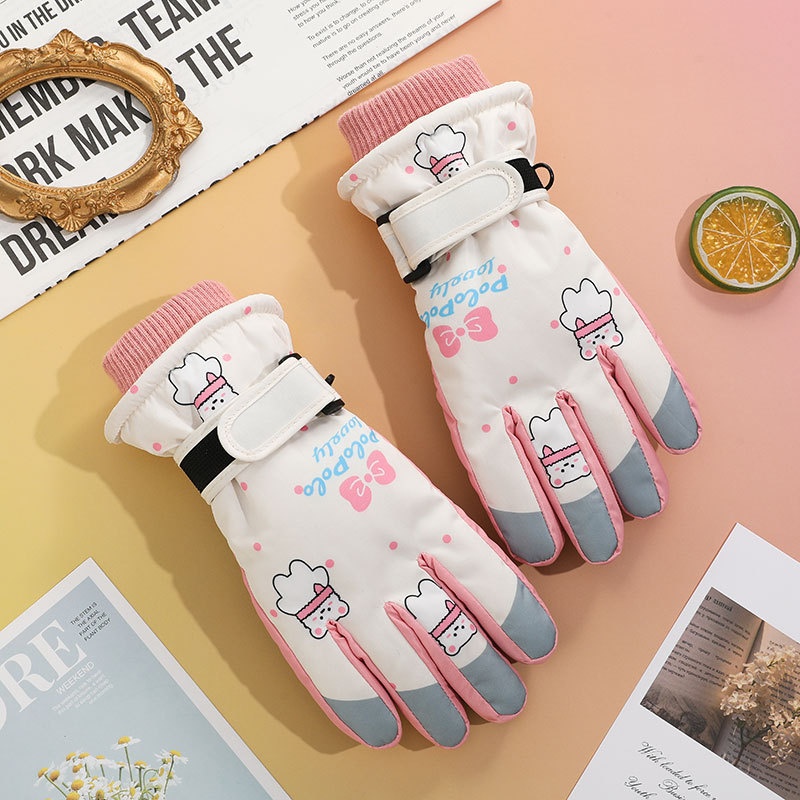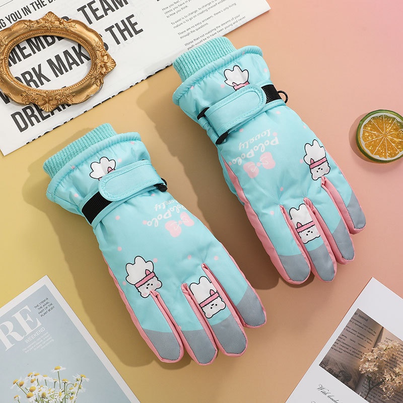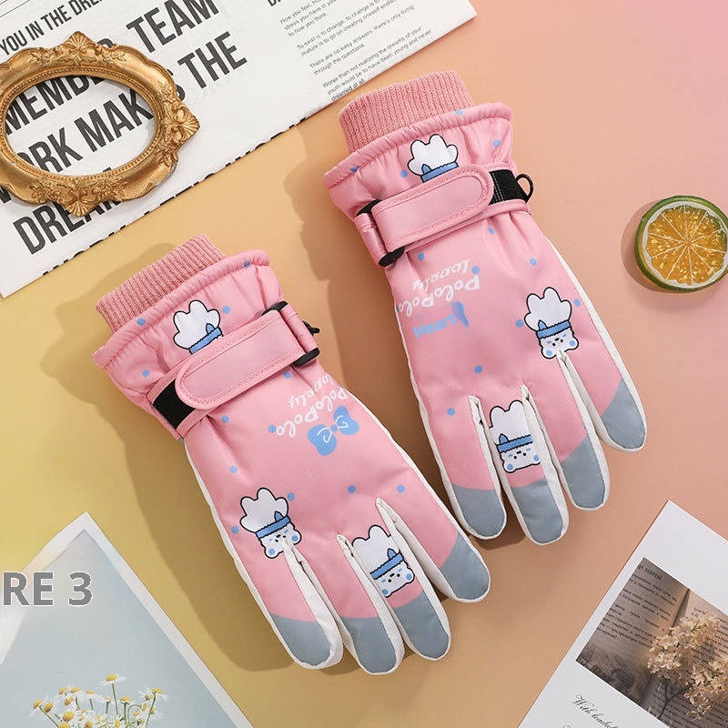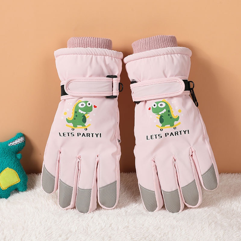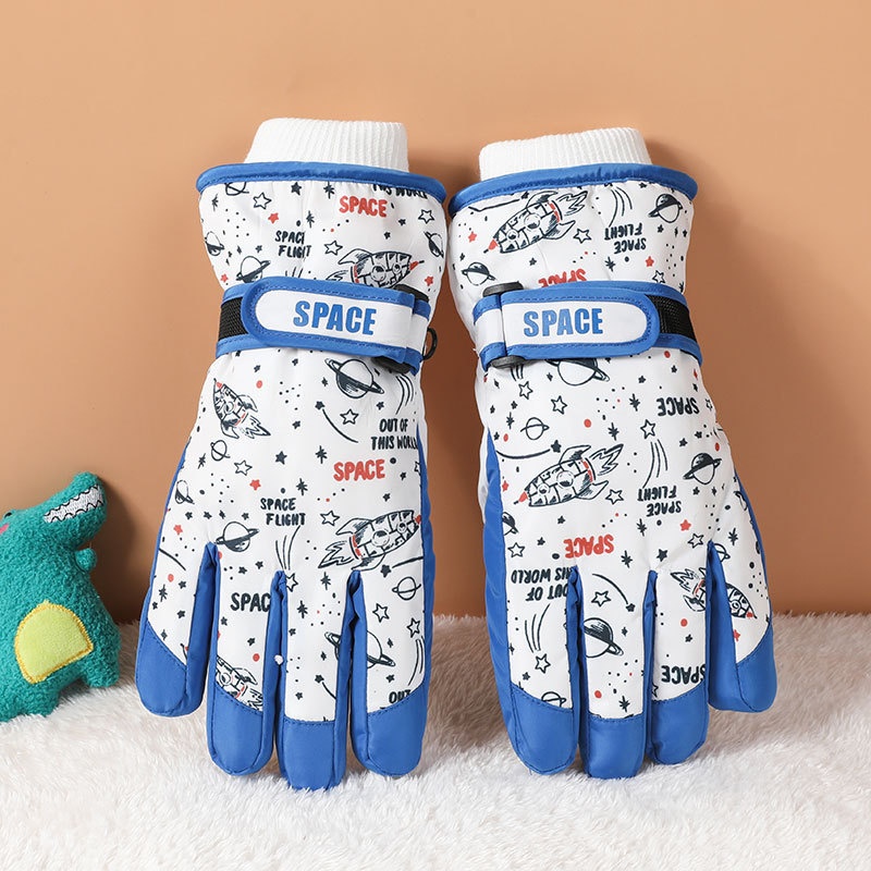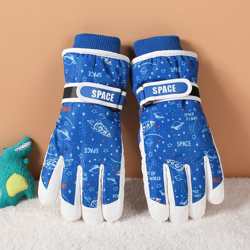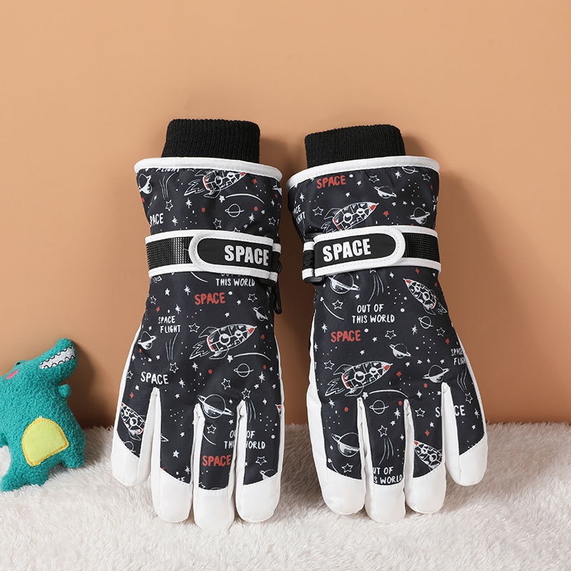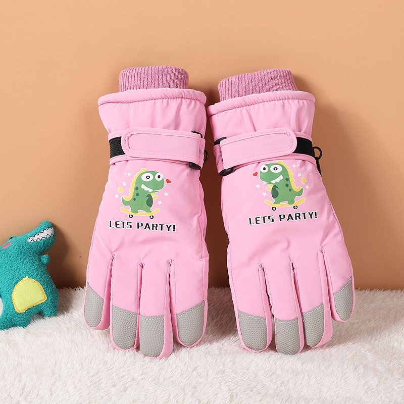 001 Cross-Border Winter Children's Ski Fleece-Lined Thickened Touchscreen Cycling Anti-Slip Windproof Student Cartoon Warm