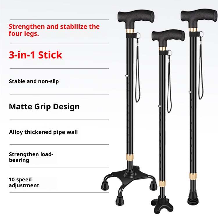 001 Elderly Telescopic Four-Legged For Seniors Special Armrest Cane Lightweight Multifunctional Non-Slip Walking Stick