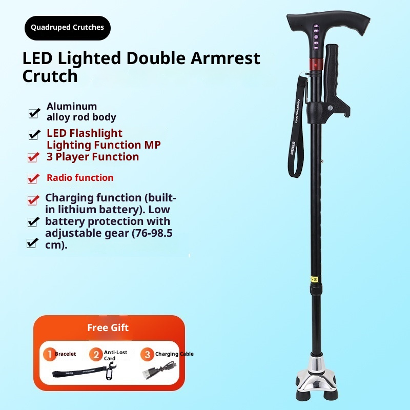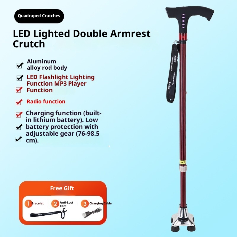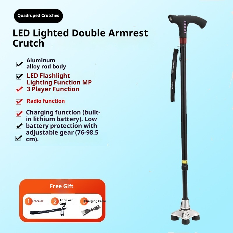 Brand:Lerunfu,Product Category:Climbing Poles,Material:Stainless Steel/Aluminum Alloy,Weight:289g-0.45kg,Item Number:LF-07 Intelligent Electroplating,Origin:Hebei,Size:67–89.5 cm,Model Number:LRF-01,Color:Smart Radio 3-in-1 Function--Single-Leg Model-Red, Smart Radio 3-in-1 Function--Single-Leg Model-Black, Smart Radio 3-in-1 Function--Single-Leg Model + Assistive Armrest-Black, Smart Radio 3-in-1 Function--Four-Leg Model-Red, Smart Radio 3-in-1 Function--Four-Leg Model-Black, Smart Radio 3-in-1 Function--Four-Leg + Assistive Armrest-Black,Main downstream platforms:other,Main sales regions:Nationwide,We have authorized private labels available:yes,Is it exclusively for cross-border export supply?:yes,Children's Exclusive:No,Patent Type:None,Foreign Trade Export Certification:None,Quality Inspection Report Number:None