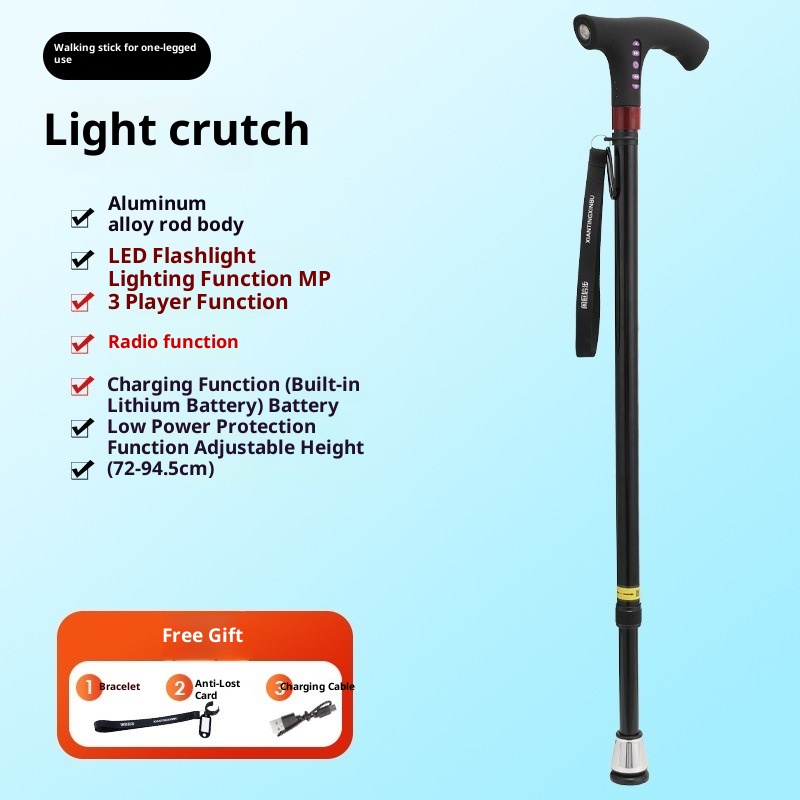 001 Multifunctional Smart Radio Elderly, Anti-Slip Telescopic Cane With Light, Aluminum Alloy Walking Stick For Seniors