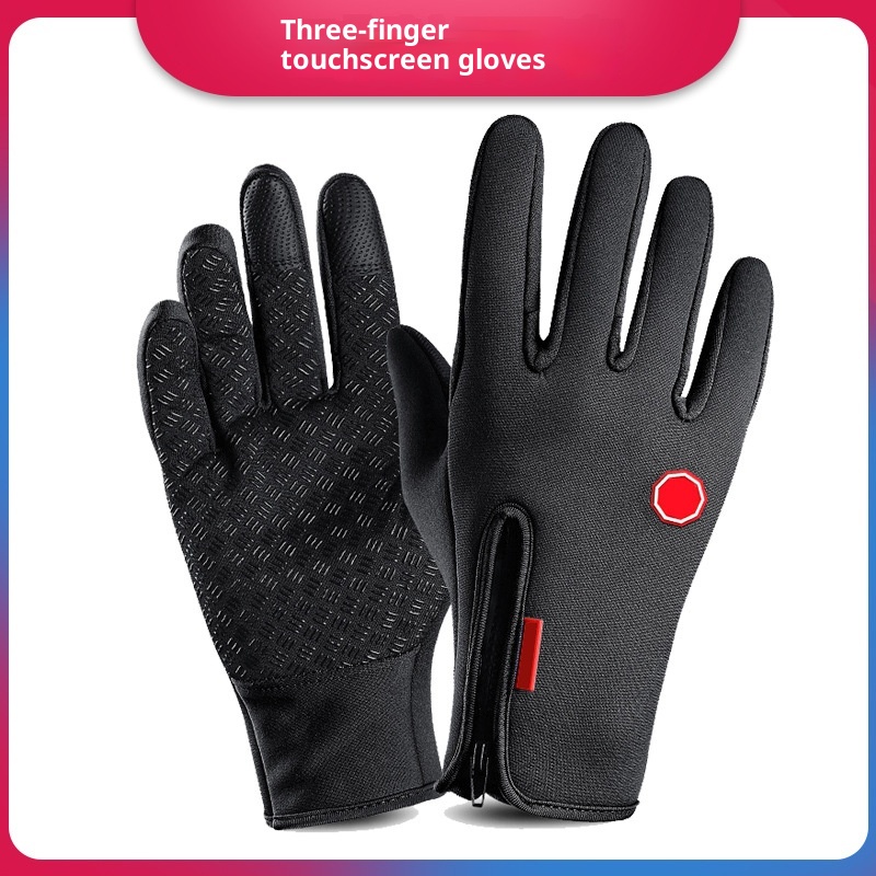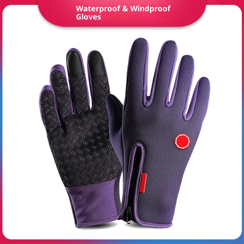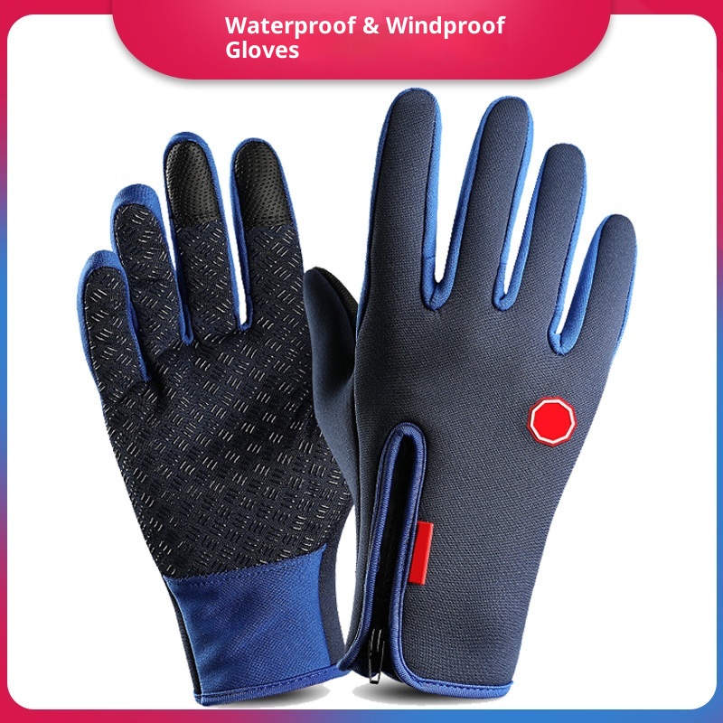 001 New Windproof Cycling Women Full Finger Sports Winter Warm Fleece Skiing Outdoor Waterproof Touch Screen Gloves Men