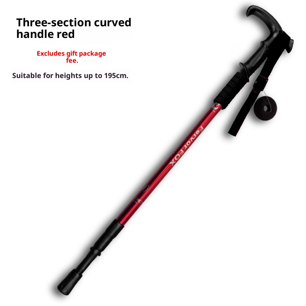 001 Telescopic Four-Section Three-Section Aluminum Alloy Elderly Shock Absorption Ultra-Light Straight Curved Handle Hiking