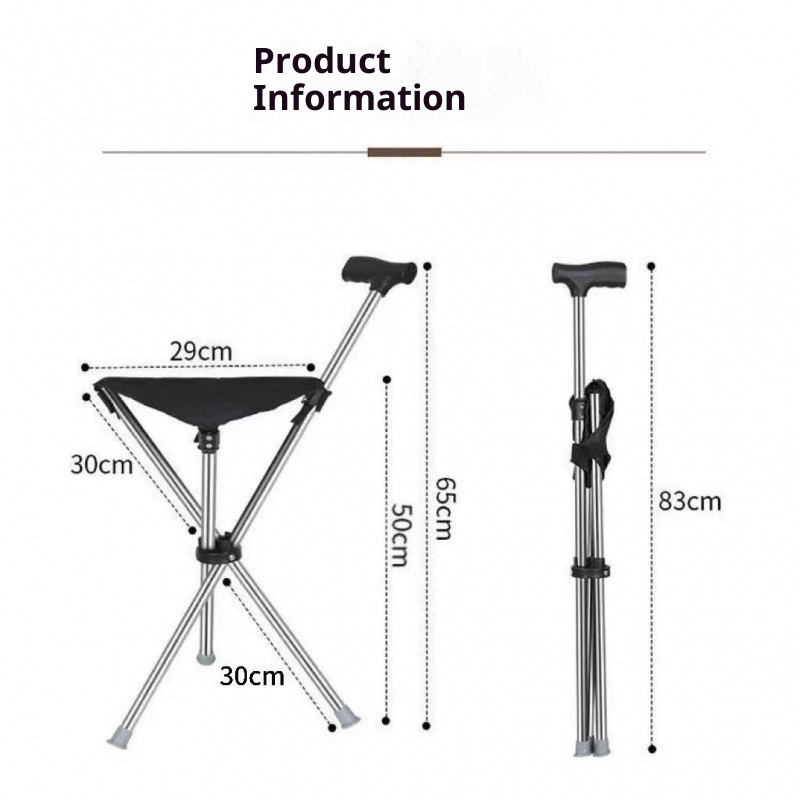 001 Travel Mobility Elderly Folding Portable Walking Stool Non-Slip Lightweight Hiking Stick Multi-Functional Steel