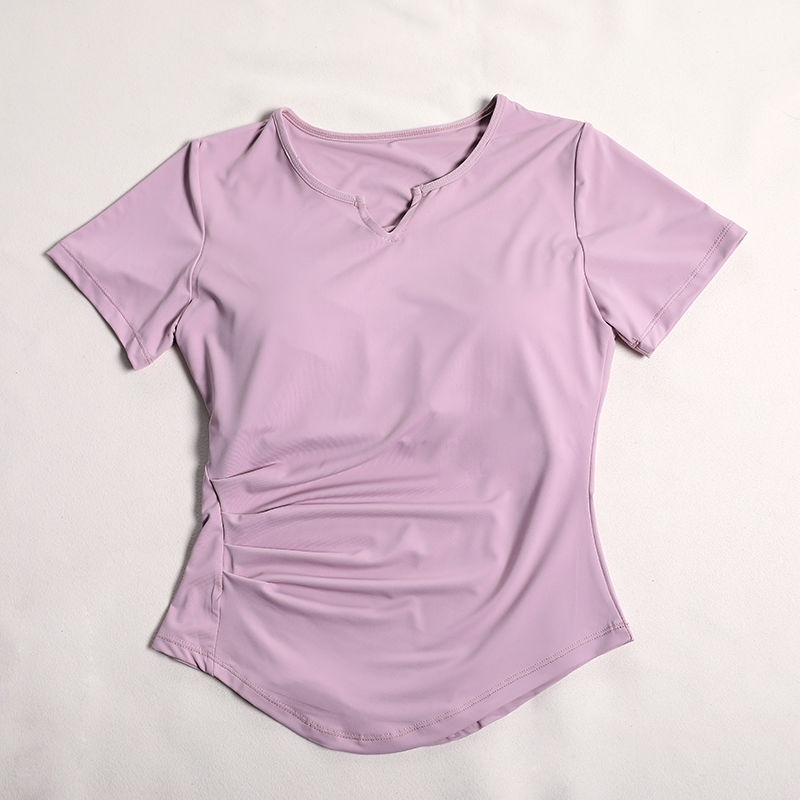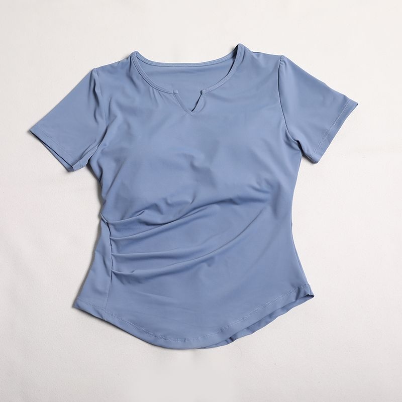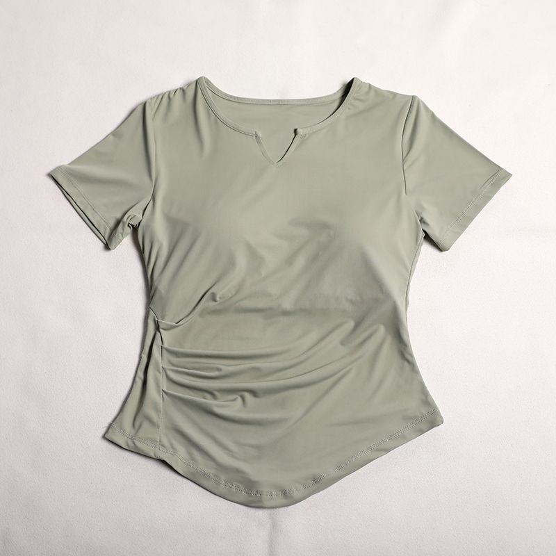 001 Yoga Shirt With Chest Pads For Women, Pilates Training, Running, Waist-Cinching, Short Sleeve Sports Top, Wholesale From