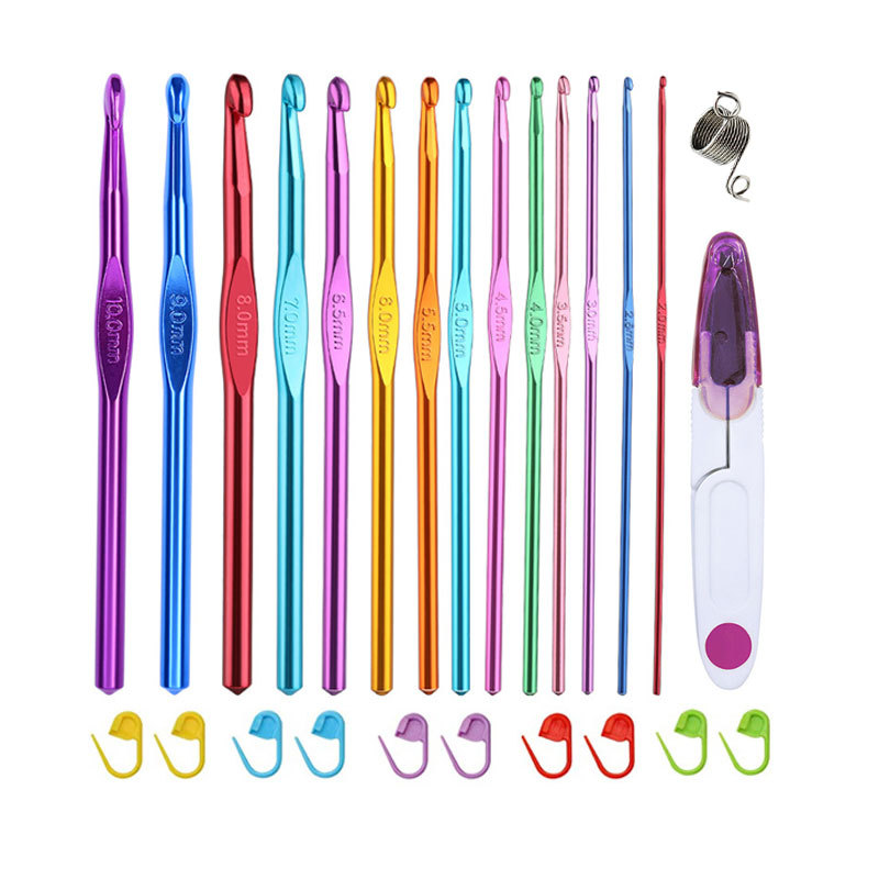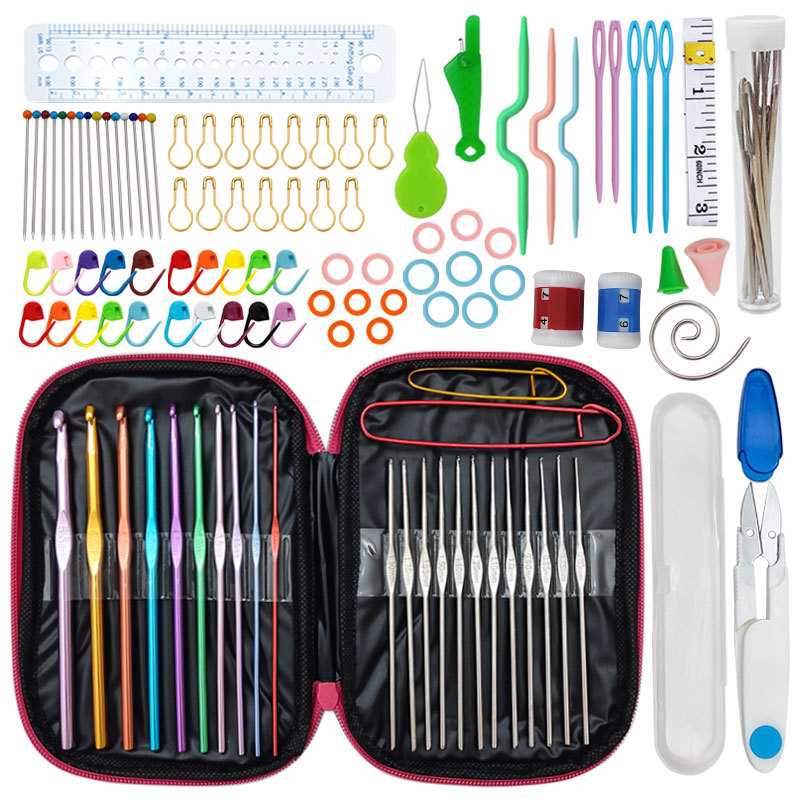 100 Piece Crochet Set Colored Aluminum Oxide Single Head Full Set Of Crochet Diy Weaving Tool Material Package