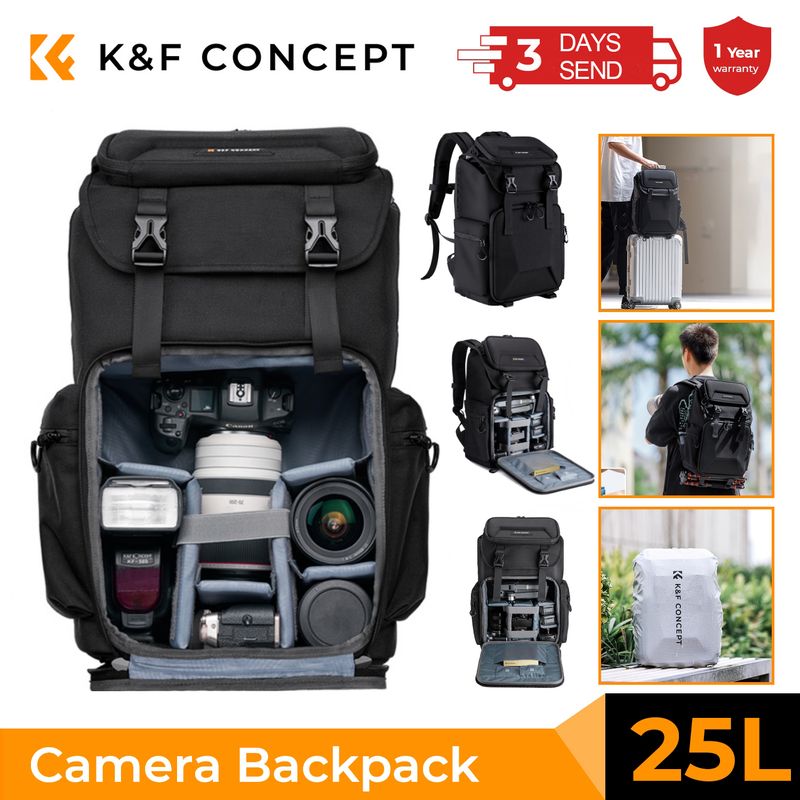 Designed with genişletilmiş ve kalınlaştırılmış omuz askıları, eşit ağırlık dağılımı sağlar, bir yağmurluk ve büyük bir askı ile birlikte gelir 1F Concept Camera Backpack is the perfect companion for photography, hiking, mountaineering, and travel advent