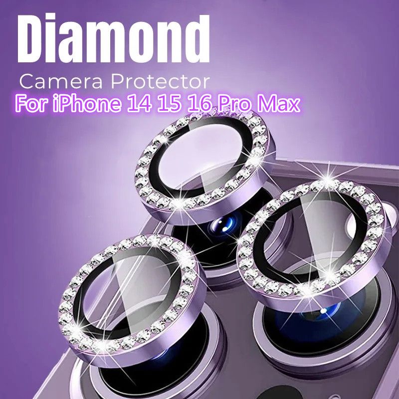 Luxury Diamond Camera Protector for iPhone 14 15 16 Pro Max Plus Metal Ring Lens Tempered Glass On iphone 14 15 14plus