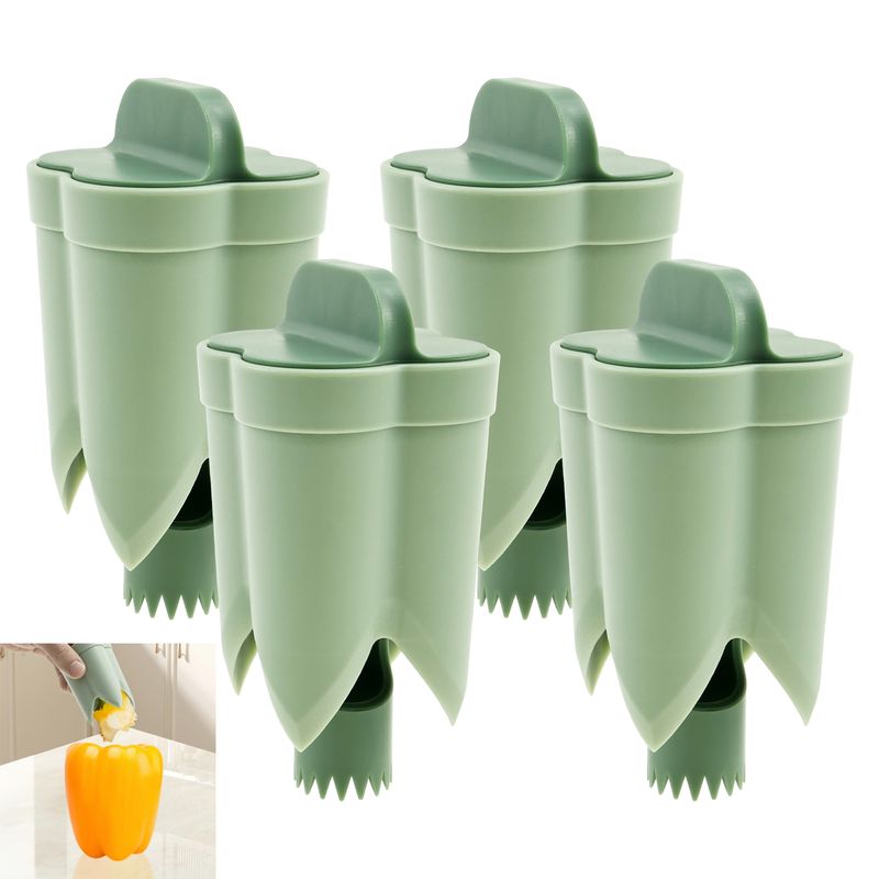4 Pack Fruits Pepper Corer Kit Easy to Store Deseeder Slicer Versatile Bell Pepper Seed Corer Tool Safe Seed Remover Tool for Your Kitchens