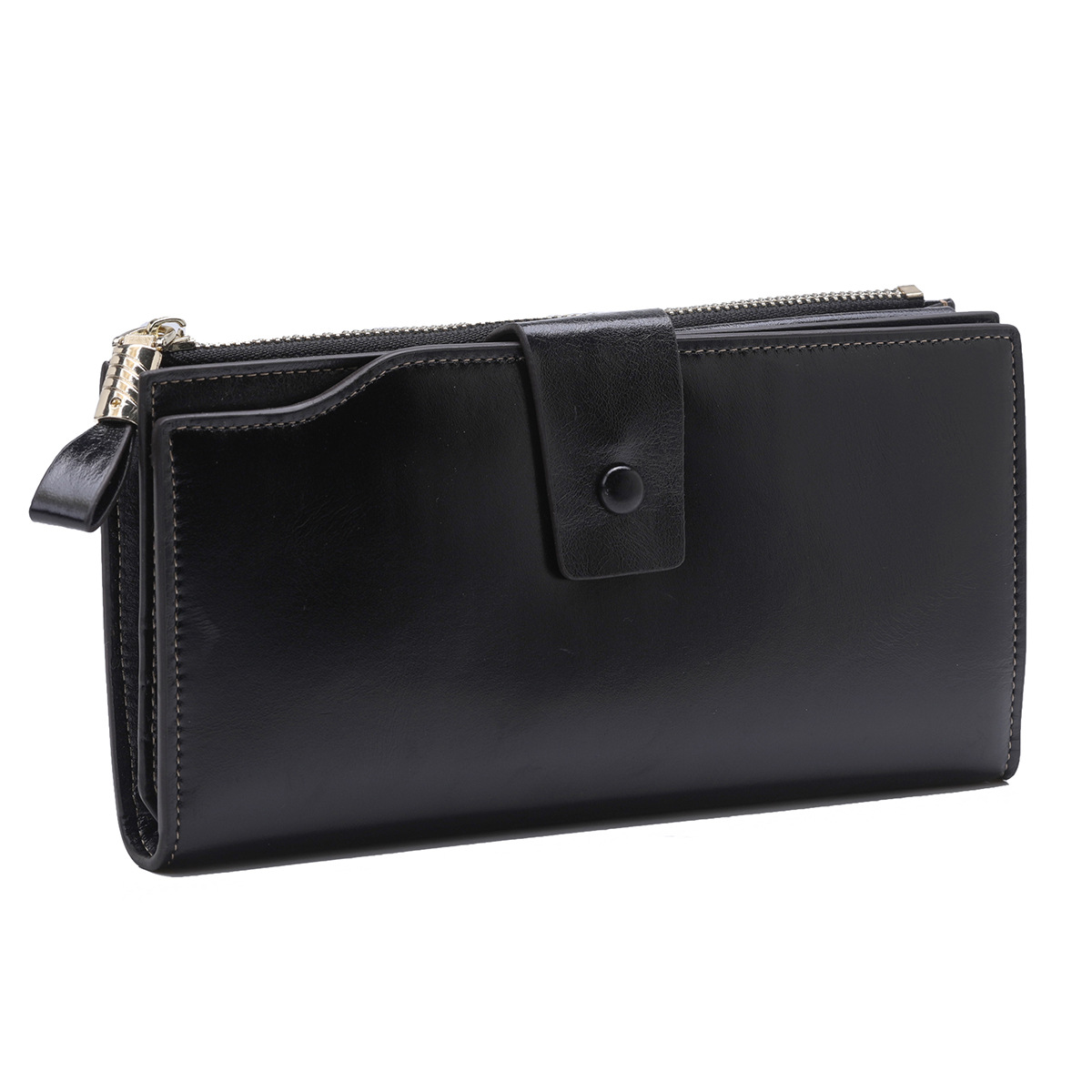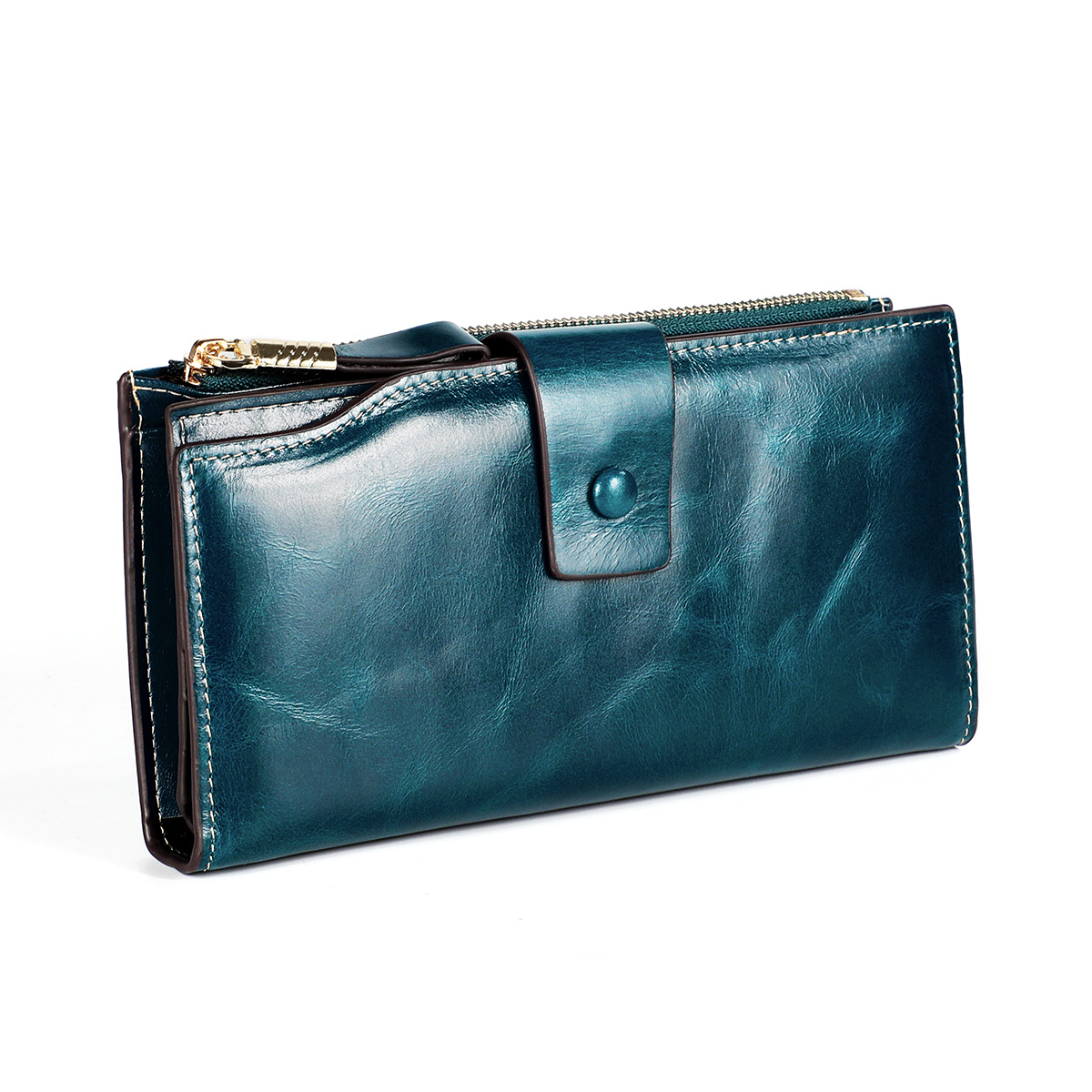 2019 Oil wax anti magnetic RFID long genuine leather wallet for fashionable top layer cowhide women's handbag