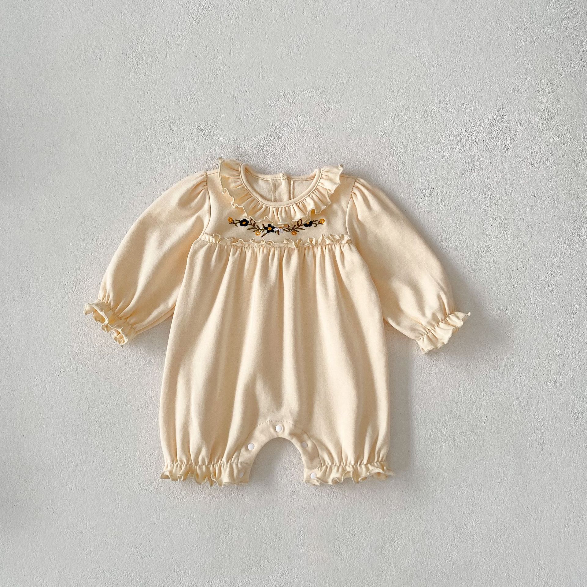 2024 Autumn New Baby and Girl Clothing Embroidered Small Lotus Leaf Collar Long Sleeve Loose Short Crawler jumpsuit