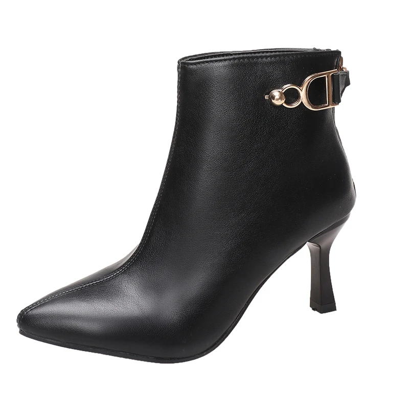 2024 Autumn Stiletto Thin High Heels Woman Pointed Toe Pu Leather Zipper Sexy Ankle Boots