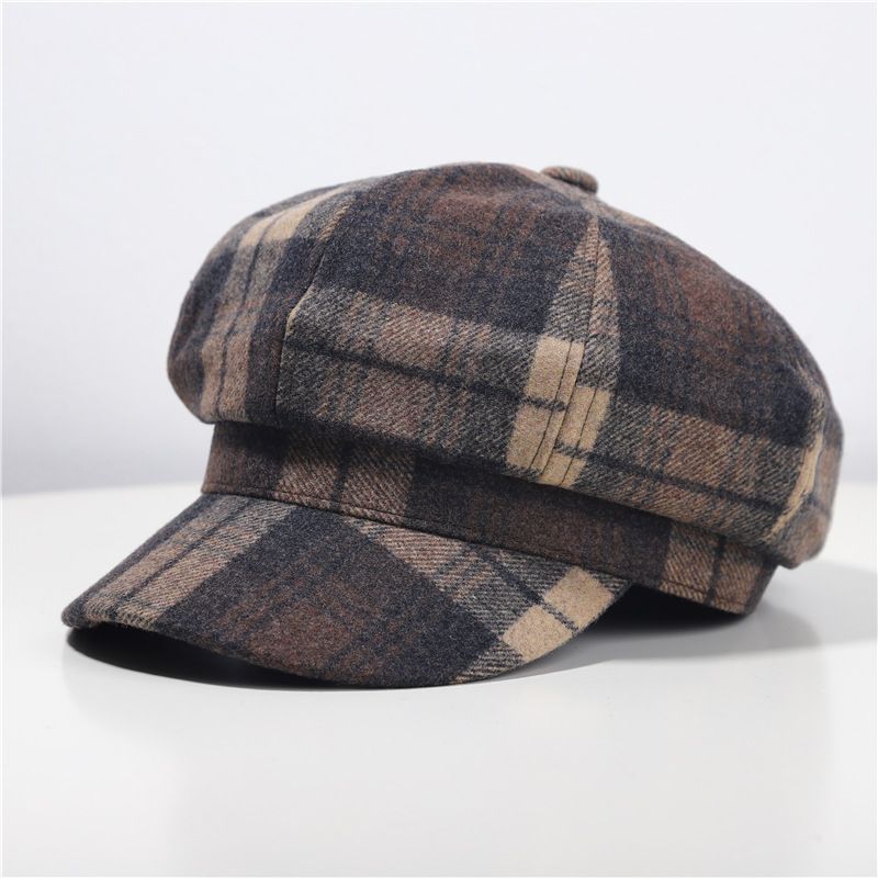 2024 New Contrasting Woolen Plaid Octagonal Hat Children's Korean Version Trendy and Versatile Beret, British Retro Painter Hat