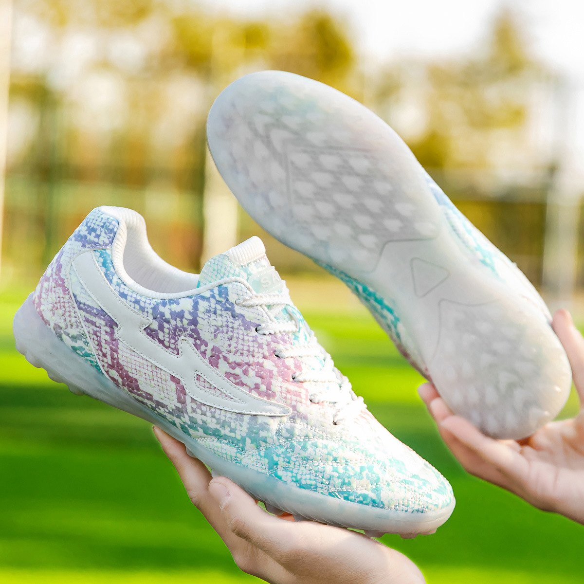 2024 New Night Glow Low Top Football Shoes with Broken Nails for Students, Personalized Professional Training Shoes, Anti slip and Wear resistant Football Shoes