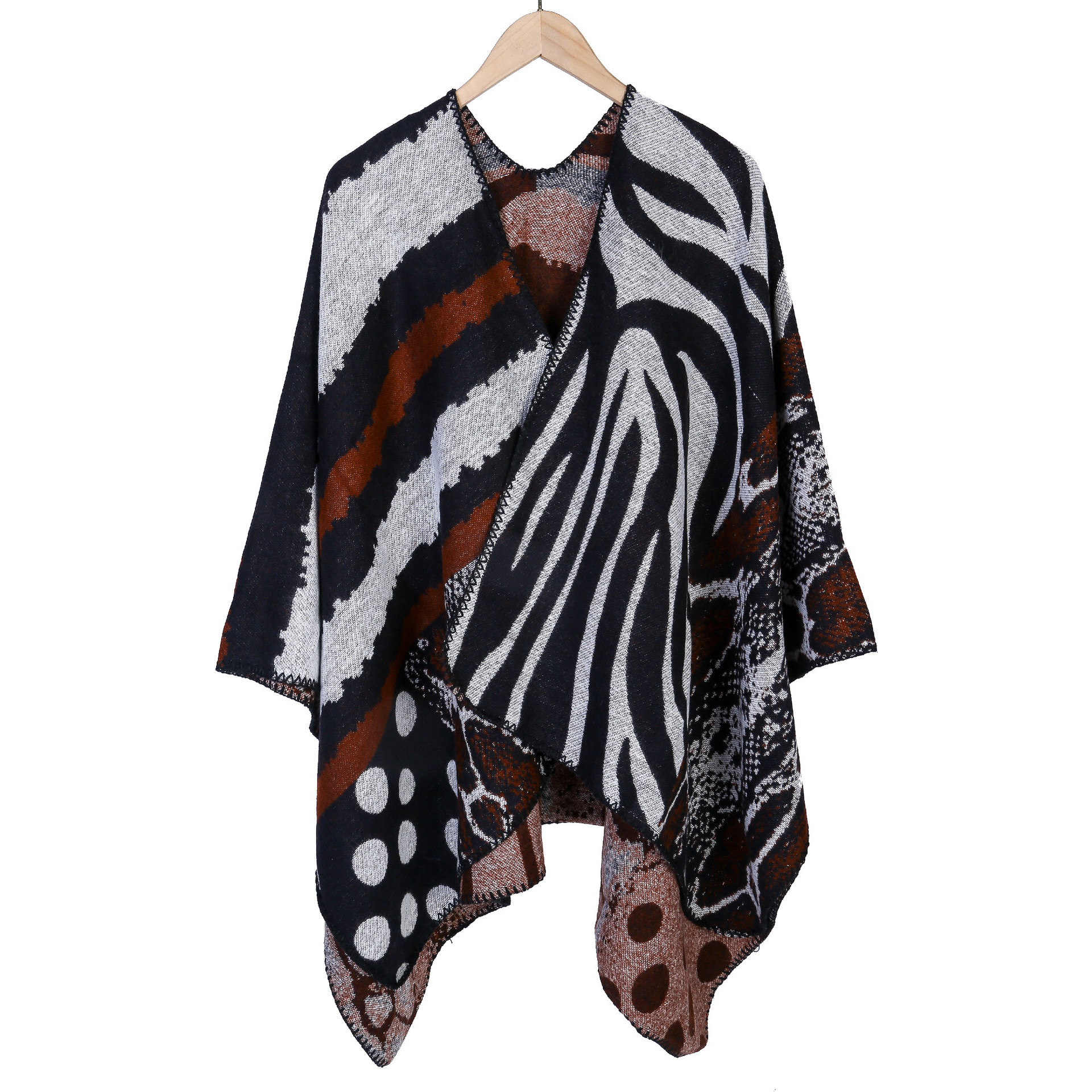 Minimally designed shawl with black and white checkered fringe, autumn and winter warm cloak, street cape