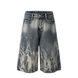 2025 American Style Lightning Burst Pattern Denim Capri Pants Unisex Design Sense Niche Loose Wide-Leg Mid-Length Pants Trendy