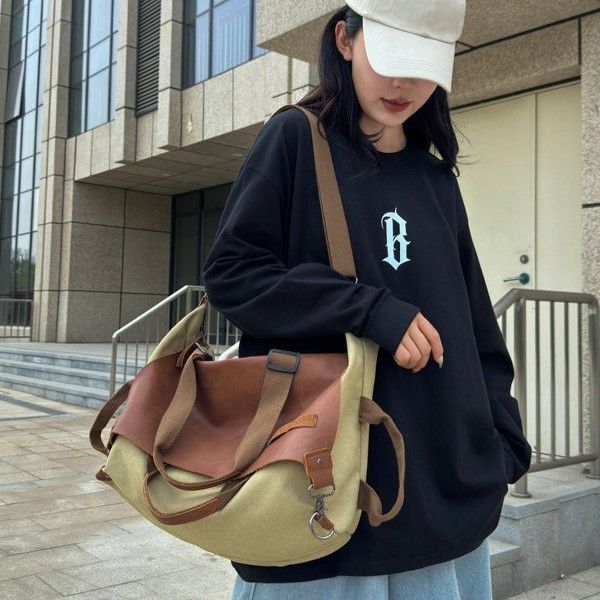 2025 Fall/Winter New Canvas and Leather Shoulder Bags, Crossbody Bags, Women's Tote Bags Versatile
