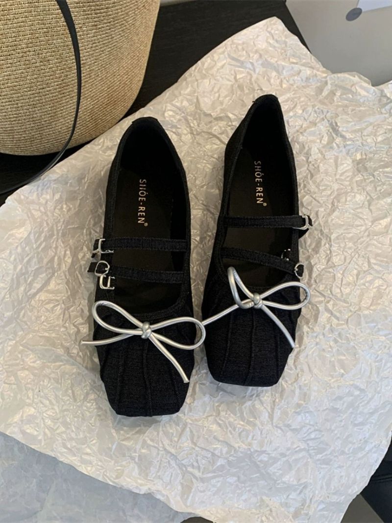 2025 Fall/Winter New Denim Single-Strap Flat Shoes Women's Bow Mary Jane Shoes Fashionable Versatile