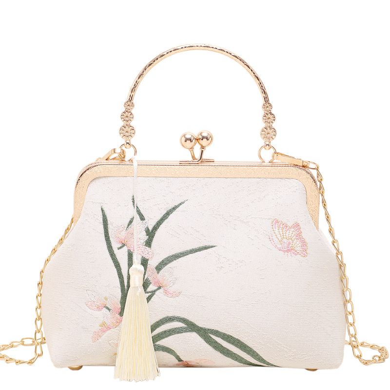 2025 New Hanfu Handmade Bag Double-Sided Embroidery Orchid Cheongsam Bag New Chinese Style Elegant Handbag Small