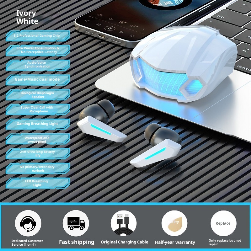 Game No Delay/Long Battery Life/Thousand Yuan Level Sound Effect/Game Music Dual Mode/Sound Positioning/Cool Appearance