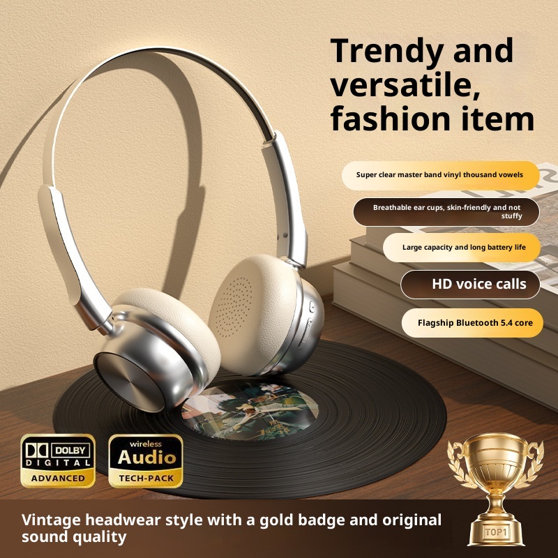 3c New Cross-Border CR-20 Retro Fashion Melard Metal Bluetooth 5.4 Over-Ear Headphones Ultra-Long Battery Life