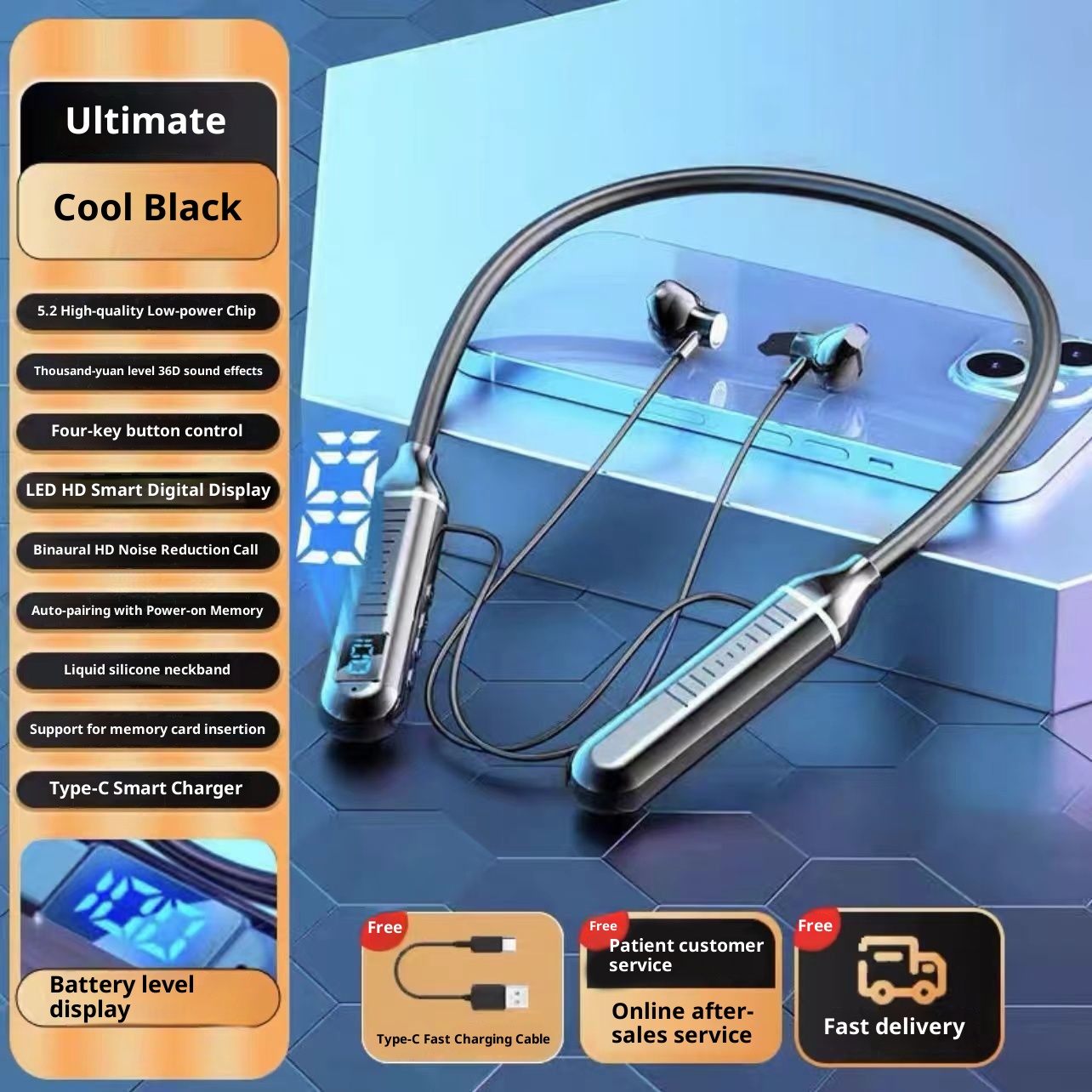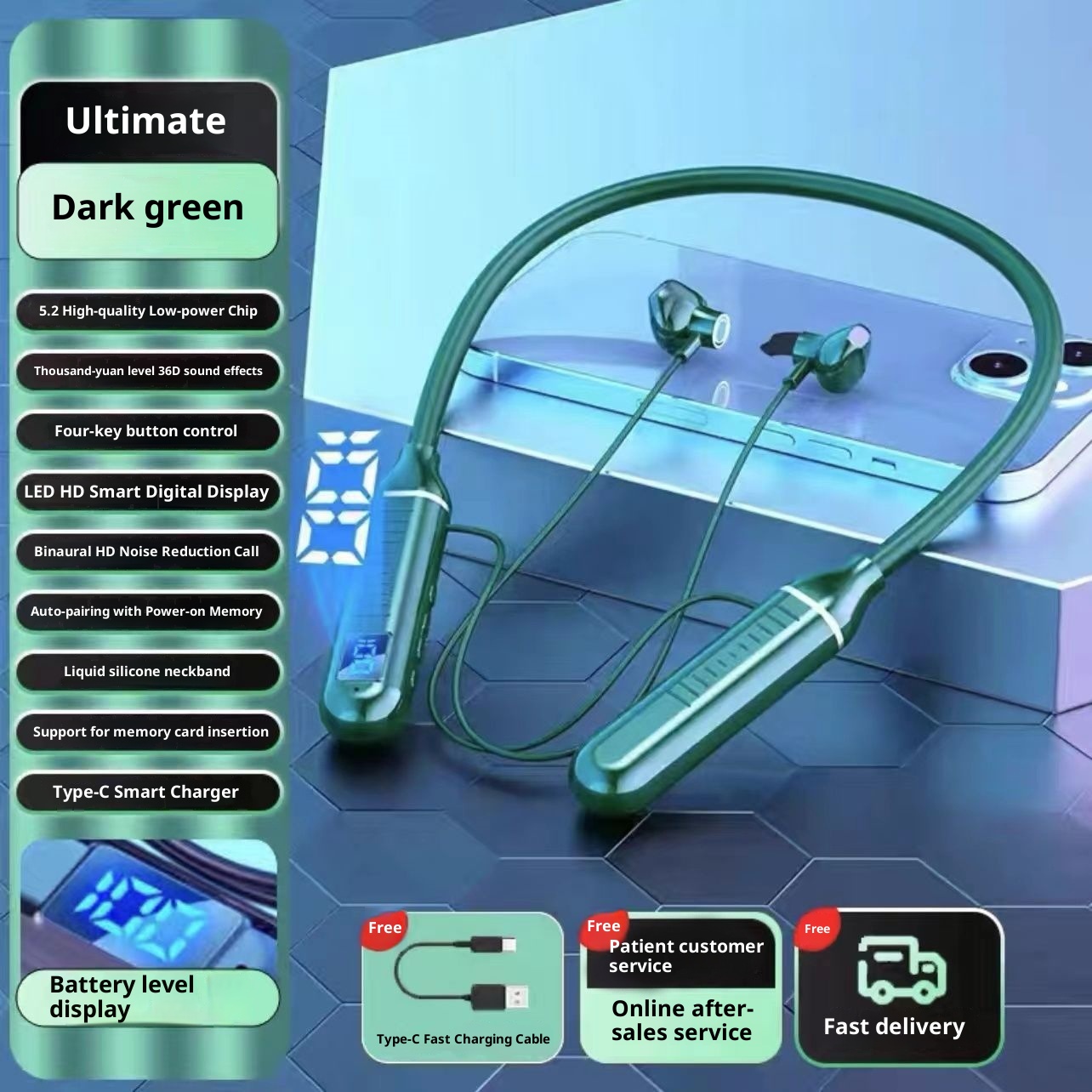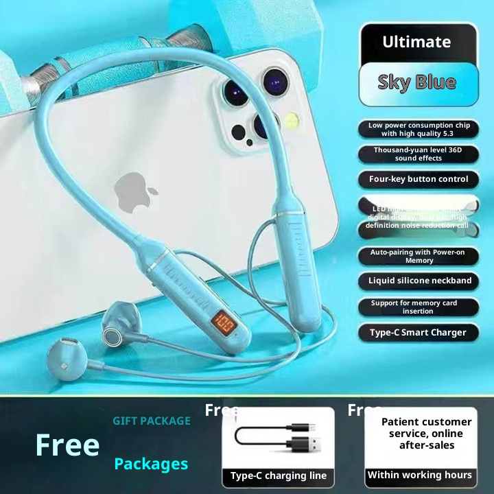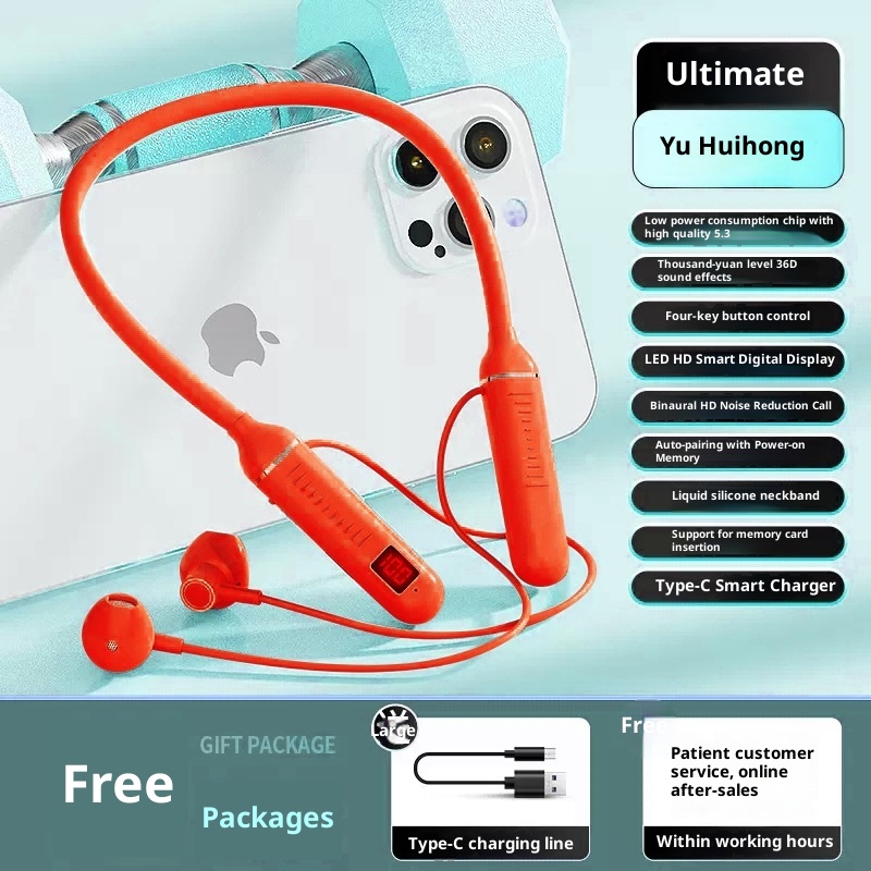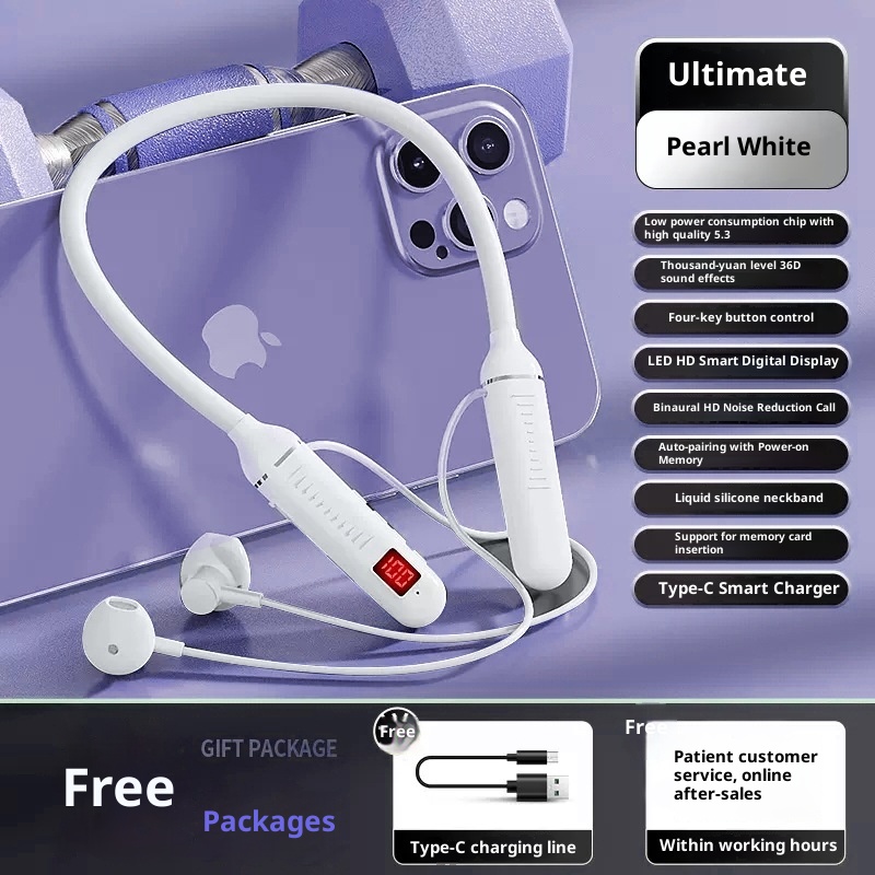 3c Wireless Bluetooth Suitable For Sports Stereo Noise Cancelling Digital Display Long Battery Life Cross-Border Neckband