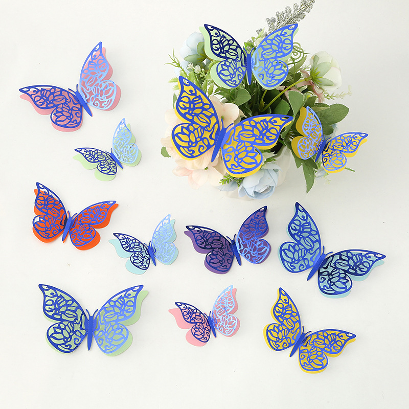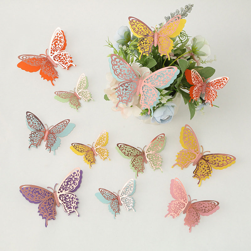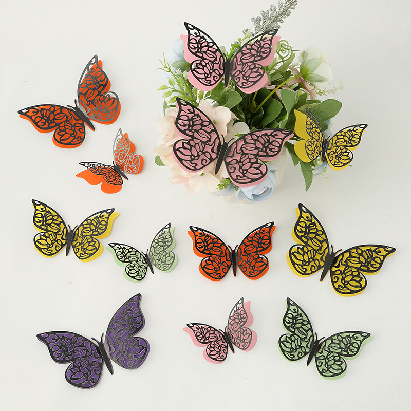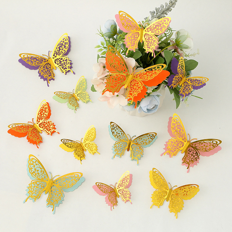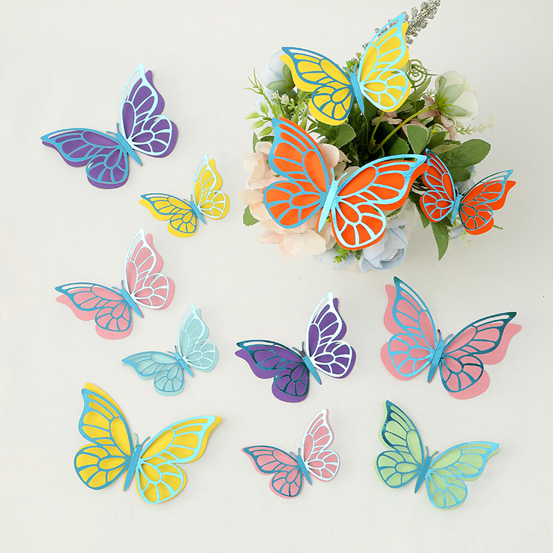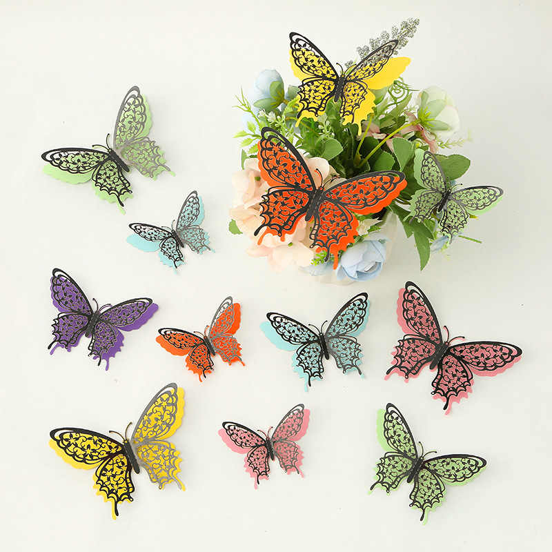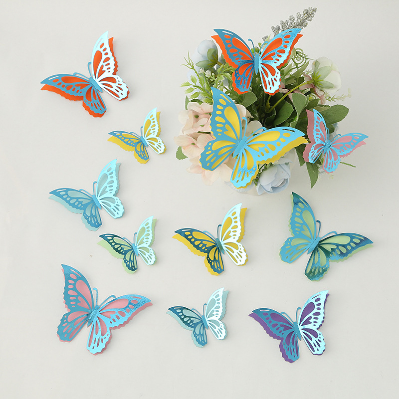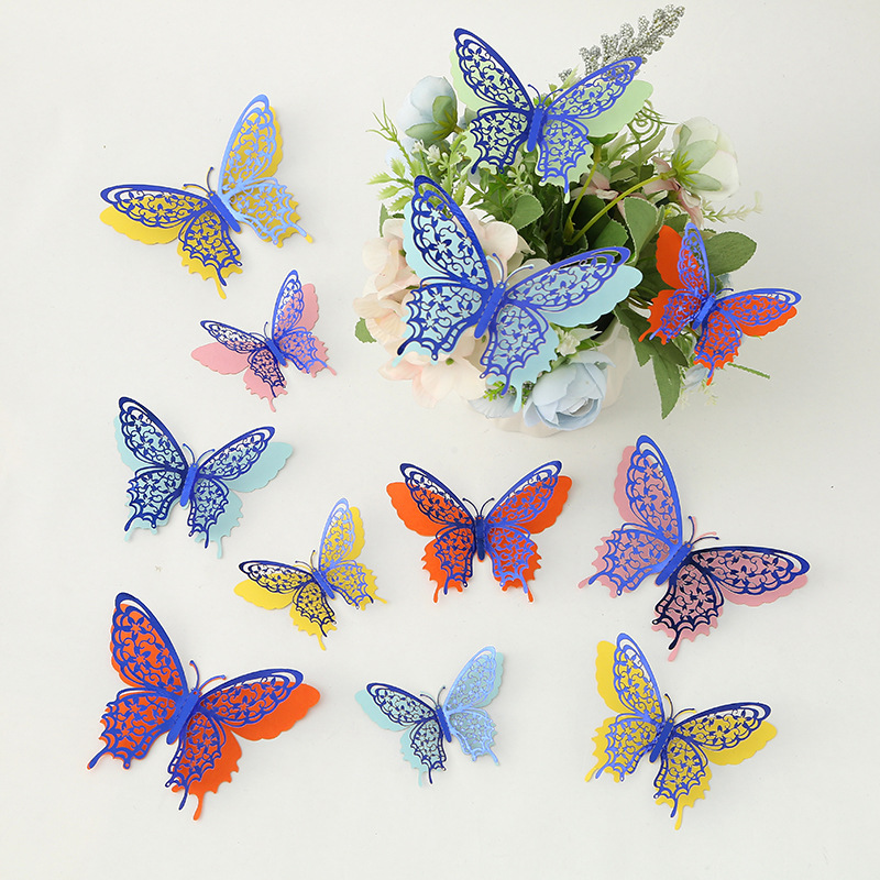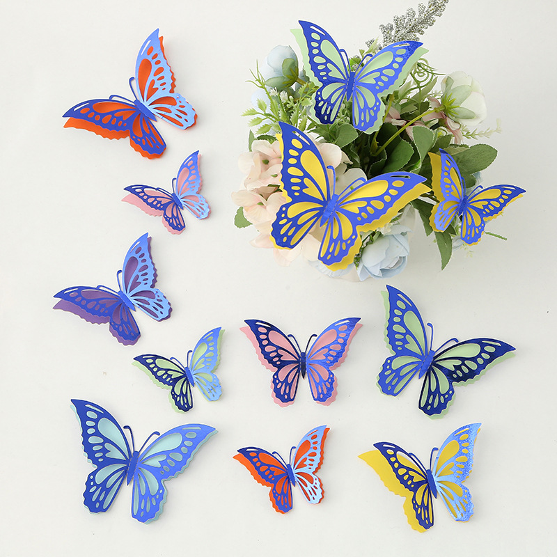 Cross-Border 3D Hollow Butterfly Decorative Three-Dimensional Wallpaper Double-Layer Metal Texture Simulated Butterfly Mixed Style Wall Stickers