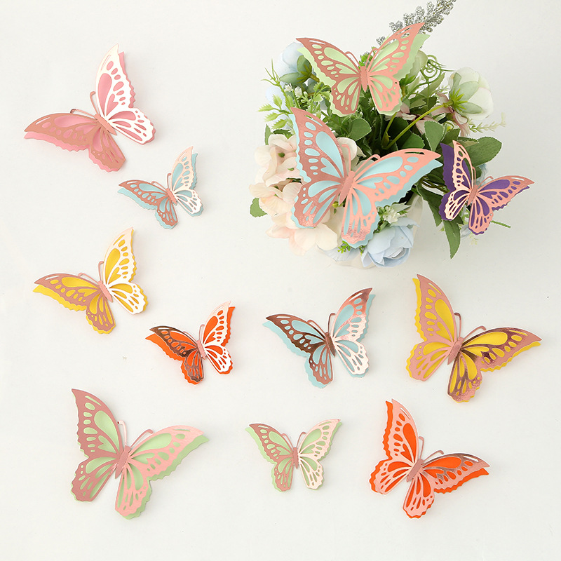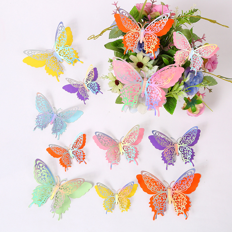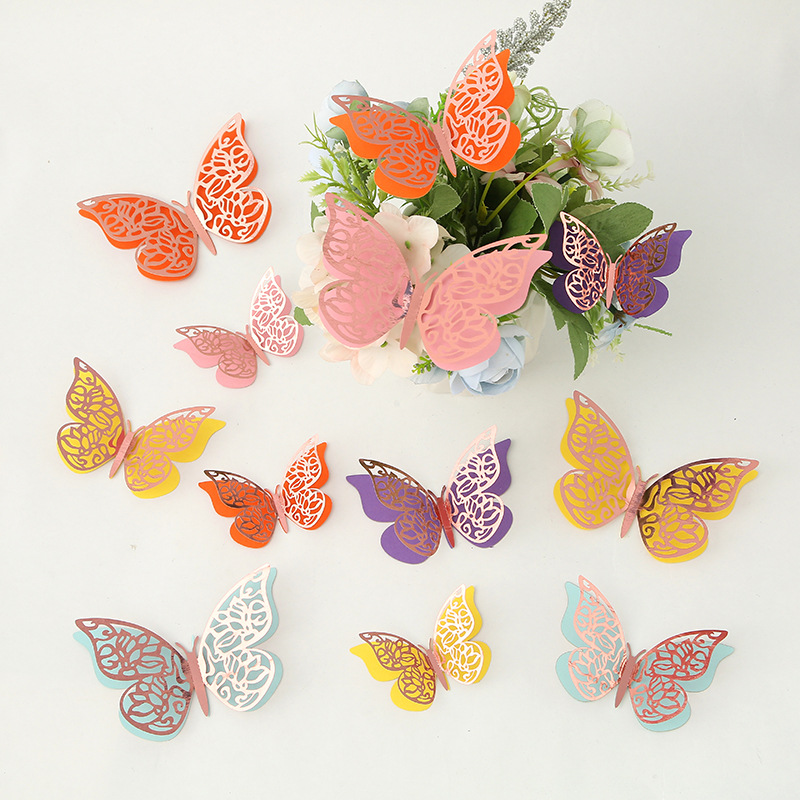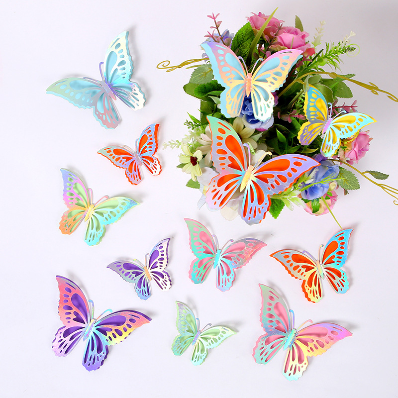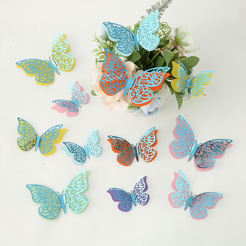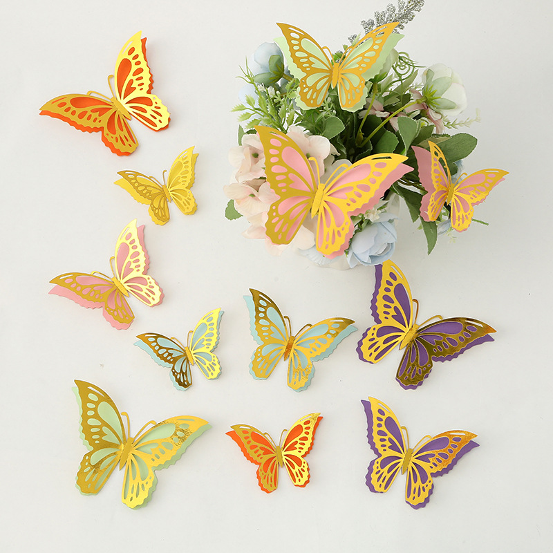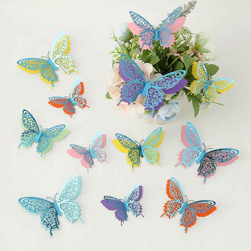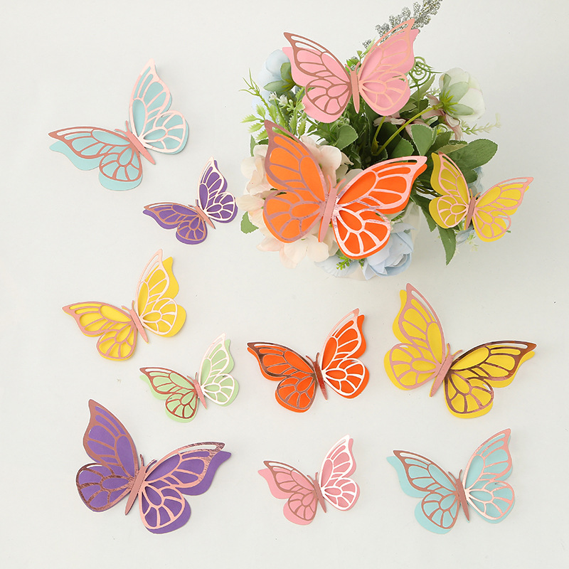 Cross-Border 3D Hollow Butterfly Decorative Three-Dimensional Wallpaper Double-Layer Metal Texture Simulated Butterfly Mixed Style Wall Stickers