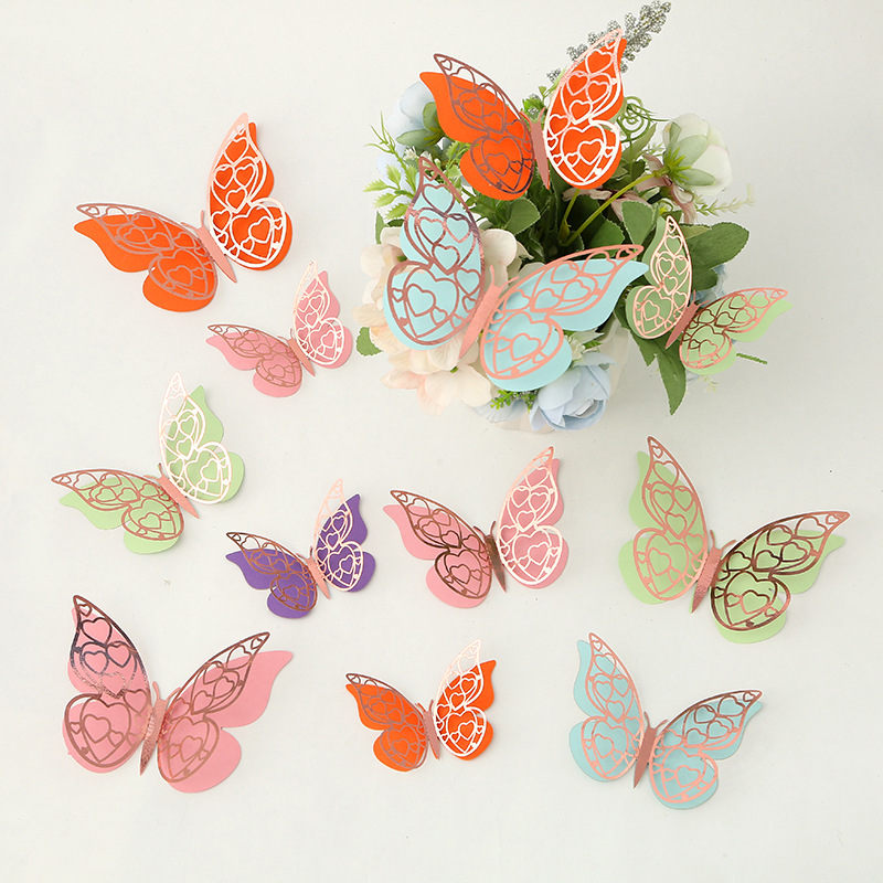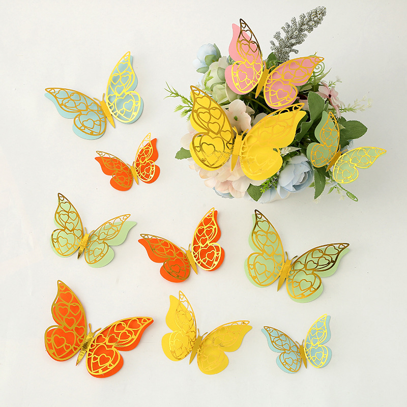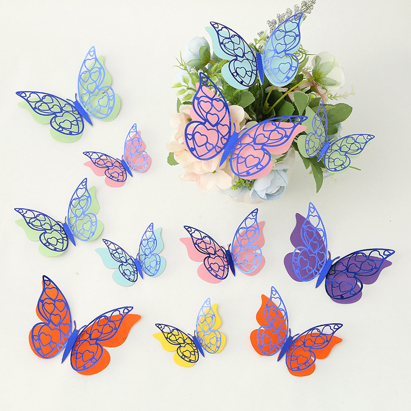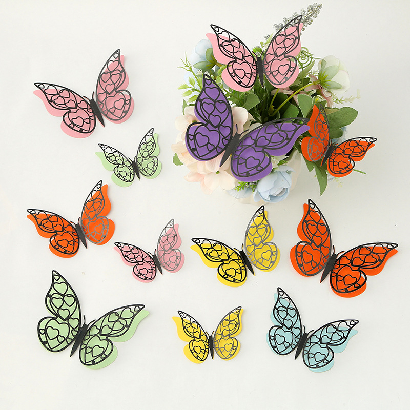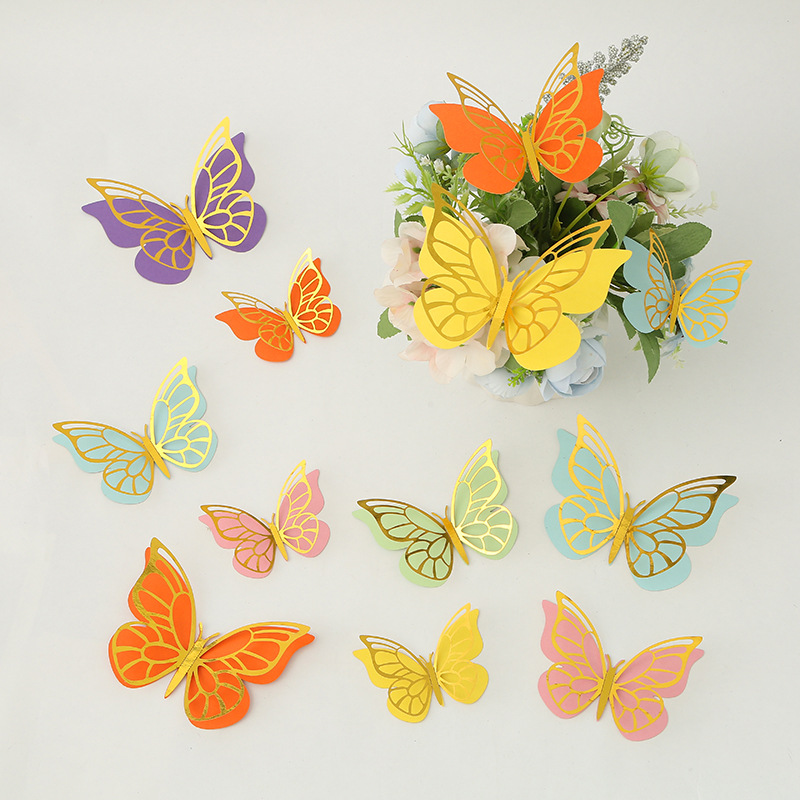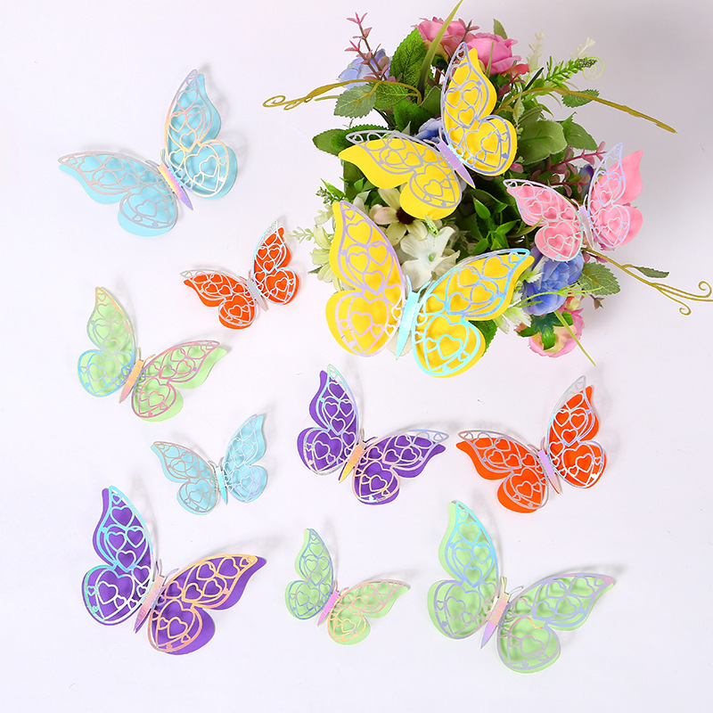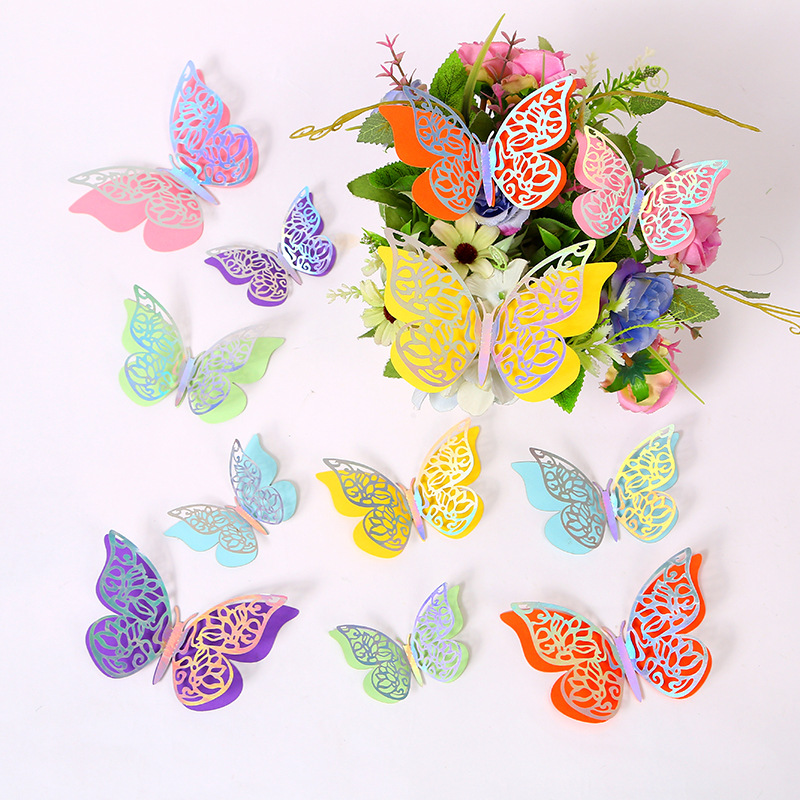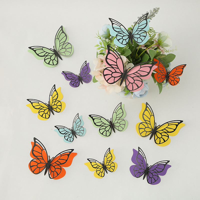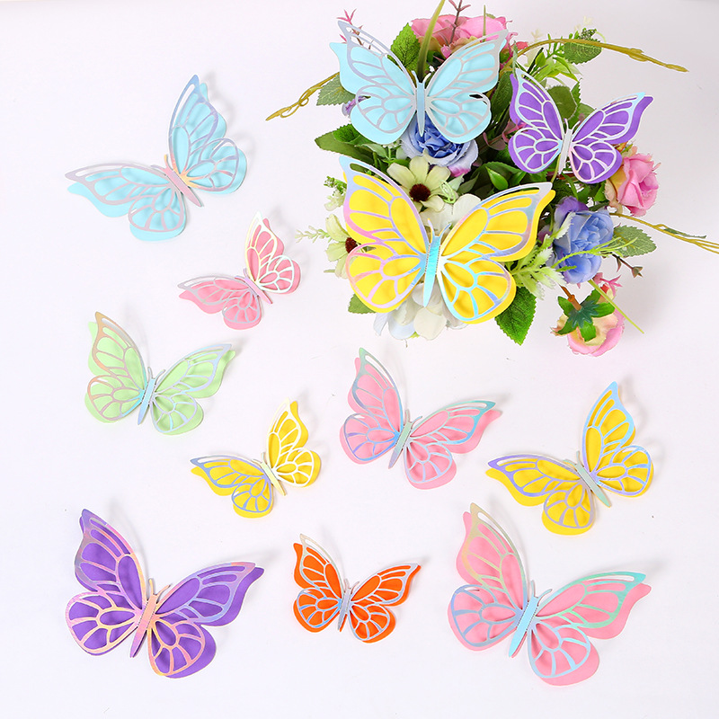 Cross-Border 3D Hollow Butterfly Decorative Three-Dimensional Wallpaper Double-Layer Metal Texture Simulated Butterfly Mixed Style Wall Stickers