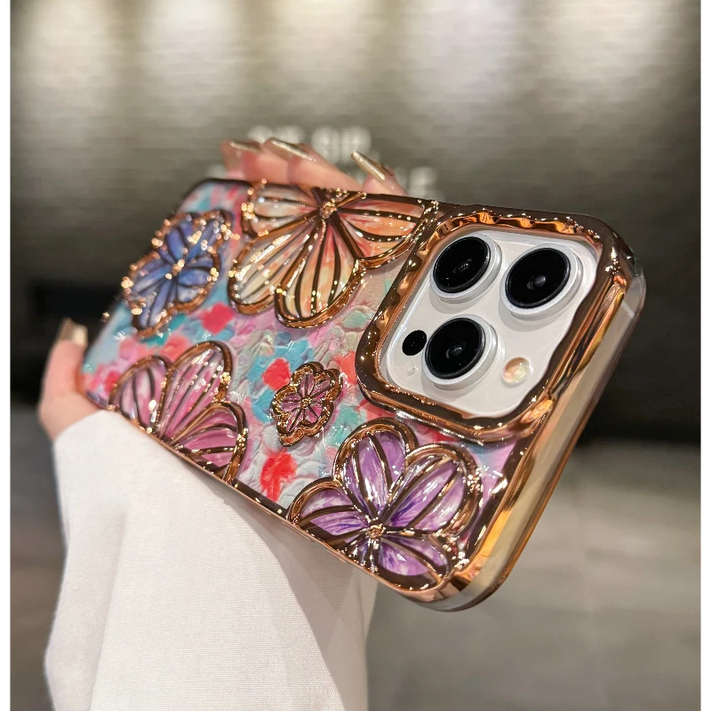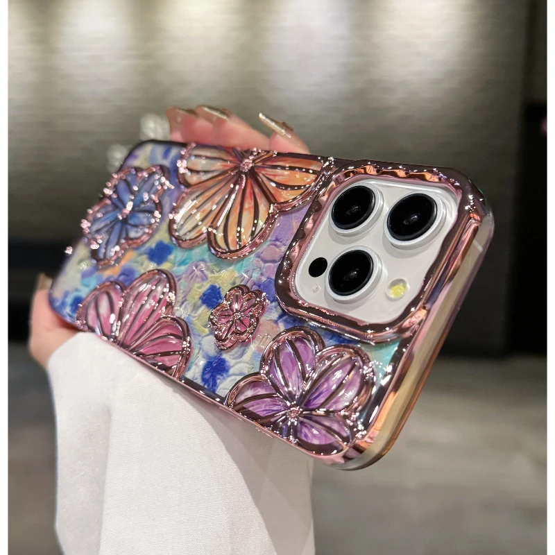 3D Flower Phone Case For iphone 15 14 13 12 11 Pro Max Fashion Creative Colorful Soft Silicone Shockproof Cover Cases