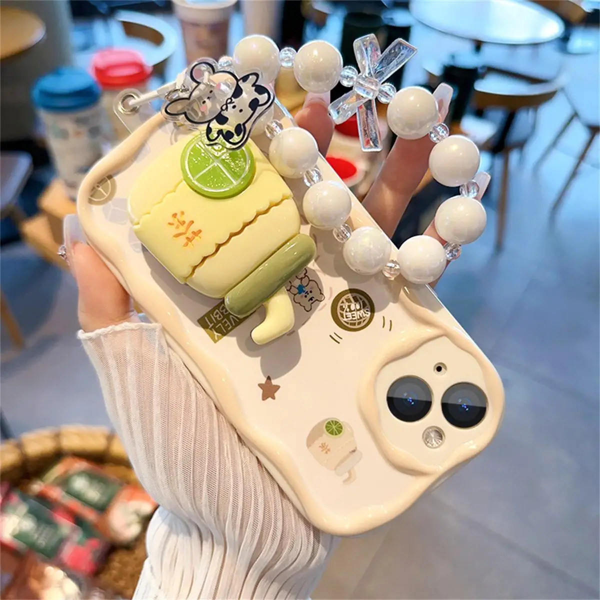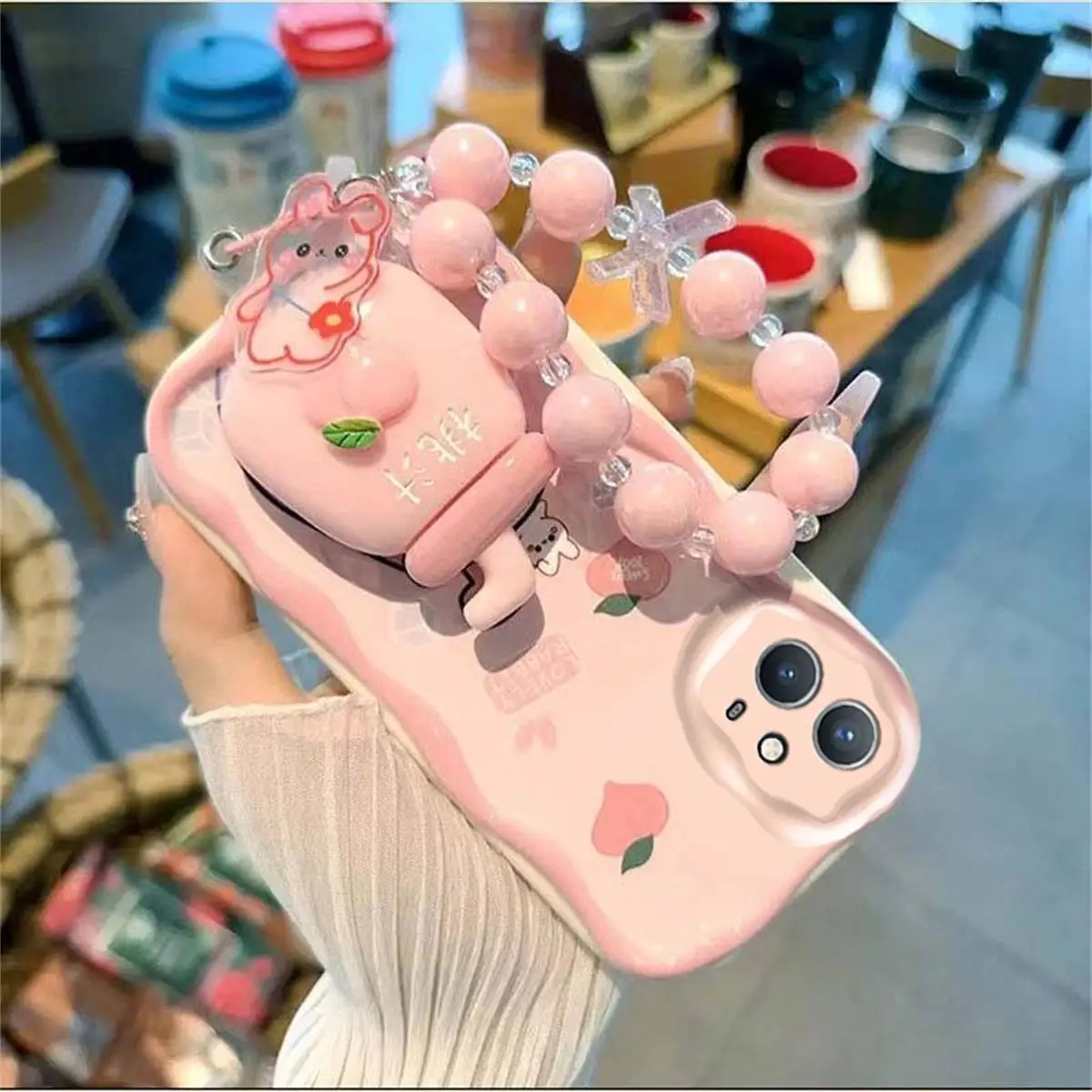3D Pink Peach Holder Stand Bracelet Chain Case for Samsung Galaxy A34 A55 S24 Ultra S22 S23 Plus A13 A54 A53 Cover Soft Capa