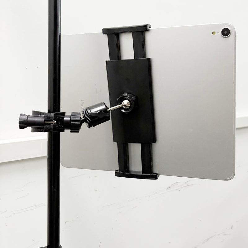Universal 4.7-13.5 Adjustable Tablet Microphone Stand Holder with 360-Degree Rotatable Swivel, ABS Waterproof Mount for Music Sheet, Live Streaming, Compatible with Tablets and Smartphones