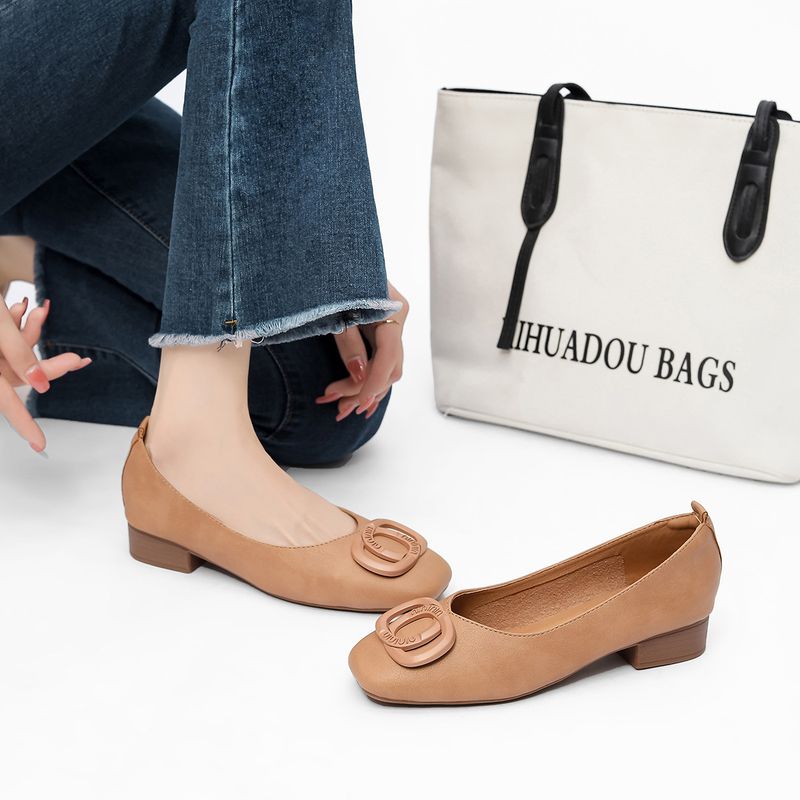 6007-3 New 2025 Autumn Winter Shoes With Letter Decoration Buckle, Simple And Comfortable Low Heel Non-Tiring Women's