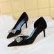 6168-AK51 Korean version high-heeled slim heel, shallow mouth pointed toe, side hollowed out fabric, metal rhinestone