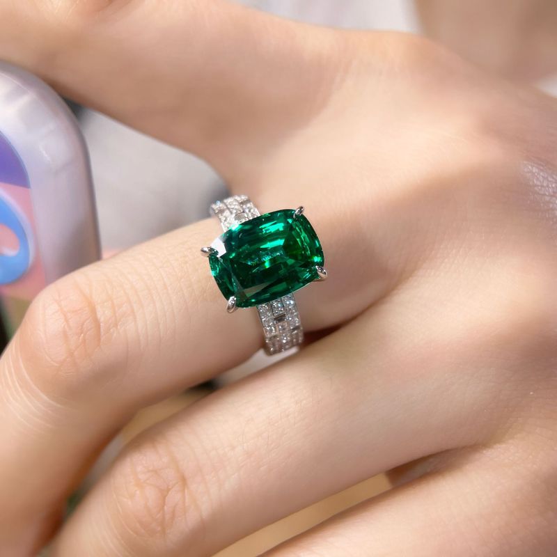 8 Carat Emerald Cultivated Carbon Diamond Set With High Grade S Silver Ring For Dinner Style