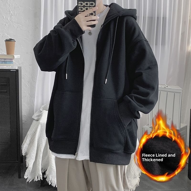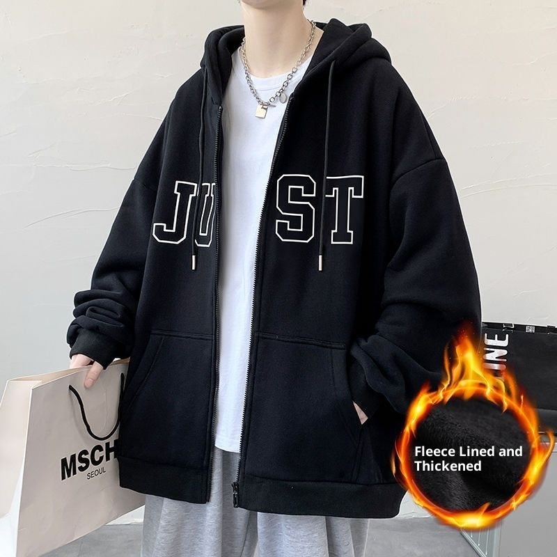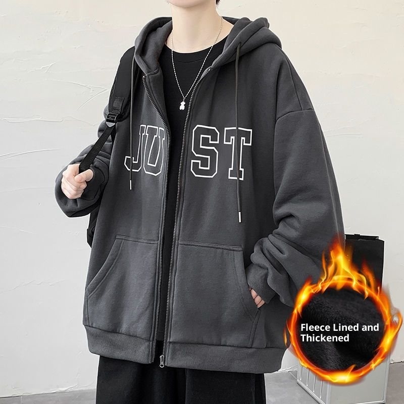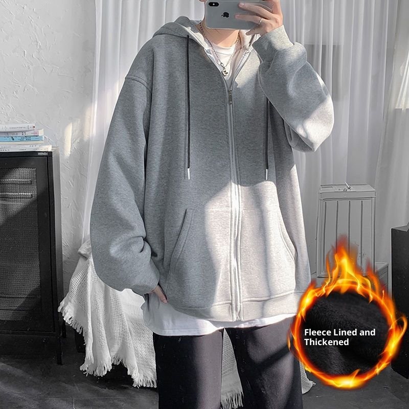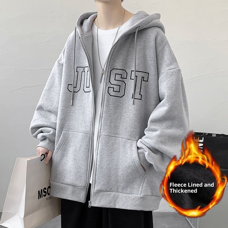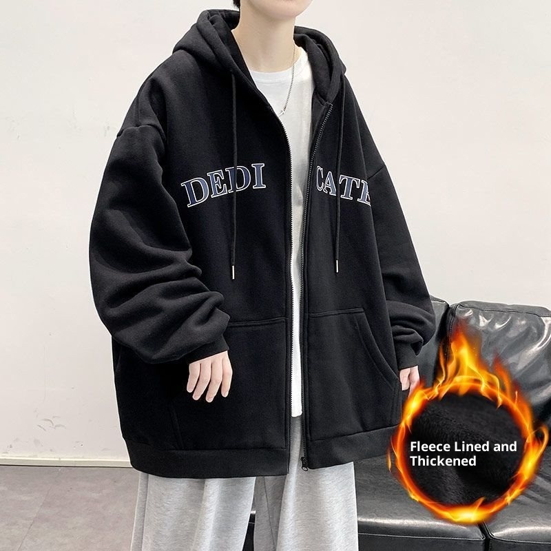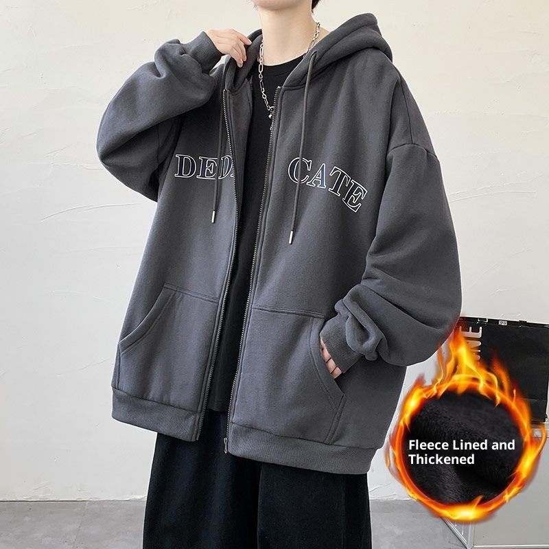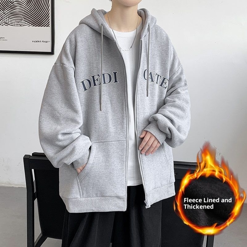ActiveGo ActiveGo Men's Spring Cardigan Sweatshirt American Retro Handsome Oversize Loose Hooded Trendy Brand Jacket