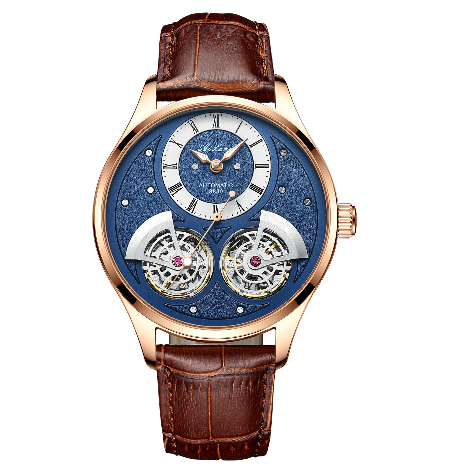 AILANG 2023 New Classic Double Tourbillon Automatic Watch For Men Leather Luminous Hands Mechanical Watches Mens Reloj Hombre