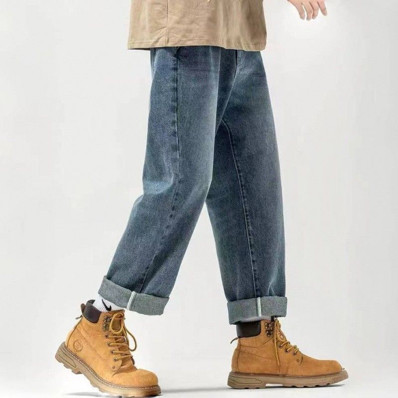 American Style Stonewashed Spring and Autumn New Vintage Three-Dimensional Tailored Slightly Tapered Straight-Leg Jeans for Men