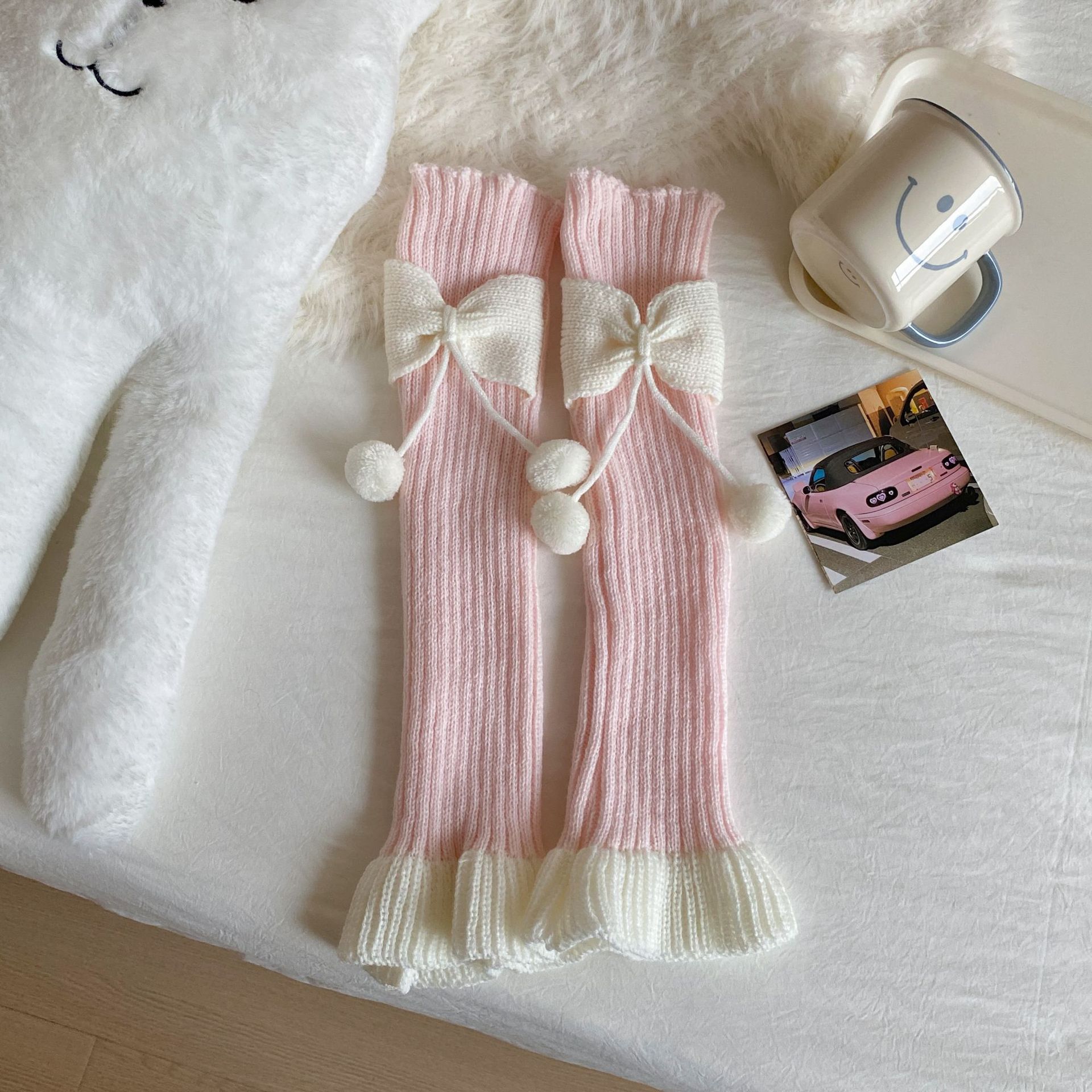 Tired of sacrificing style for warmth? These leg warmers blend Japanese kawaii aesthetics with functional design – the bow detail adds a playful touch while the fluffy pompoms keep you snug during chilly days.