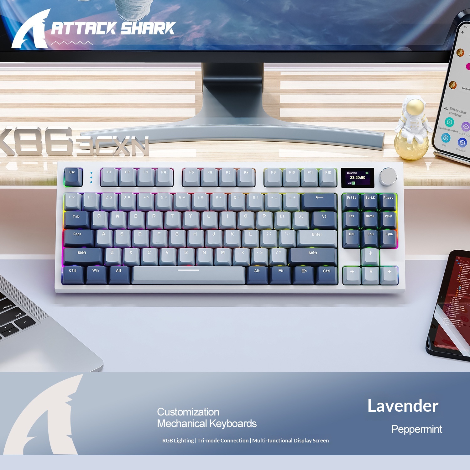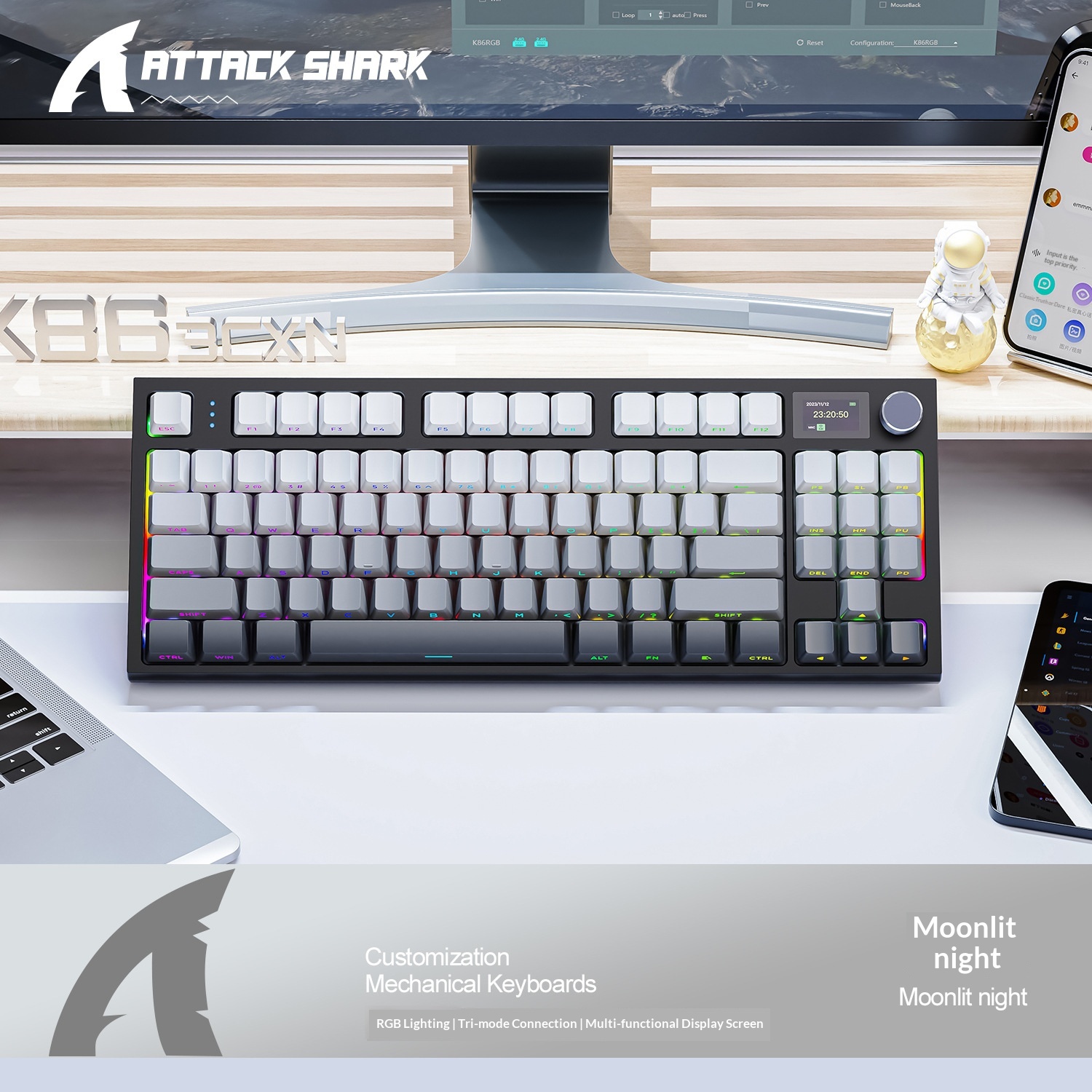 Attack Shark K86 Three-Mode RGB Bluetooth 2.4G Wired Illuminated Customizable Display Hot-Swappable Mechanical Keyboard