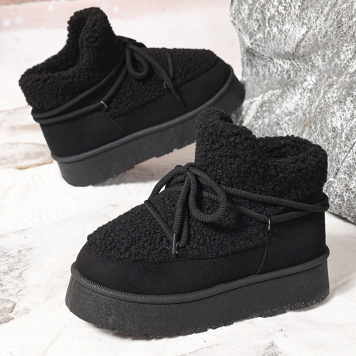 Autumn and winter new fashion cashmere thickened warm short tube slip-on elastic snow boots
