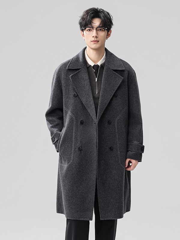 Autumn Winter New Wool Double-Sided Mid-Length High-End Suit Collar Double-Breasted Trench Coat For Men Trendy