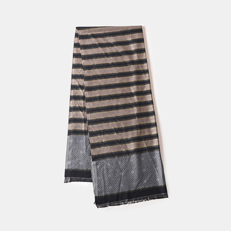 Baotou Scarf Women's Striped Silk Scarf Shawl High-end Feeling Middle Eastern European And American Striped Large Silk Scarf Square Scarf