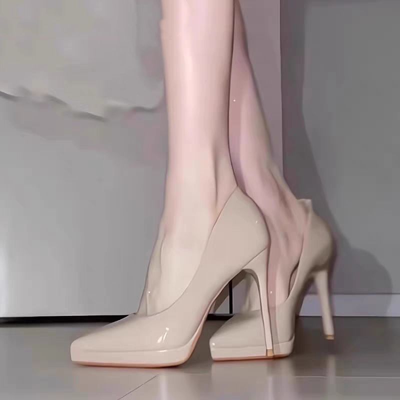 Bare color light mouth high heels for women, spring 2025 new waterproof platform, not tiring feet, single shoe temperament, pointed professional shoes