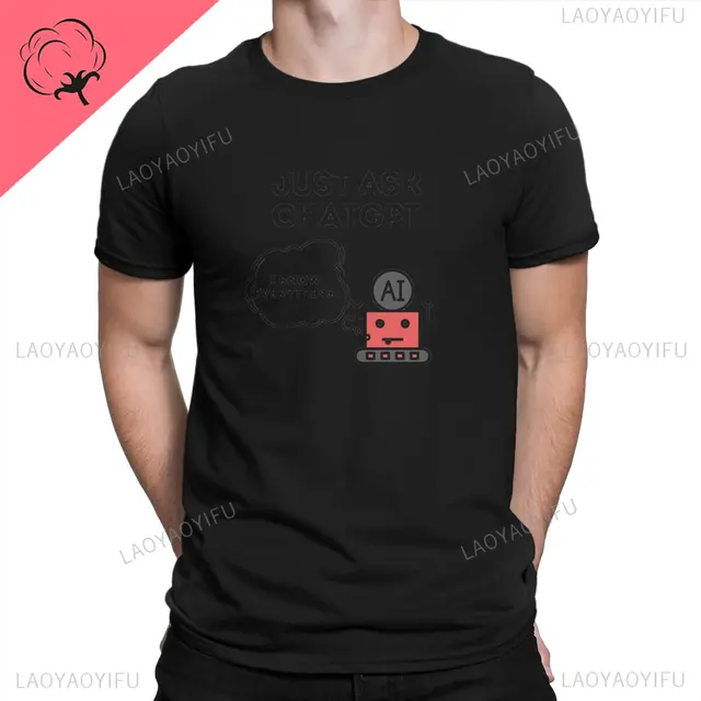 Be Smart and Ask Classic Cotton Men's T Shirts ChatGPT Funny Tees Short Sleeve Crewneck T-Shirts Boyfriend Gift Tops