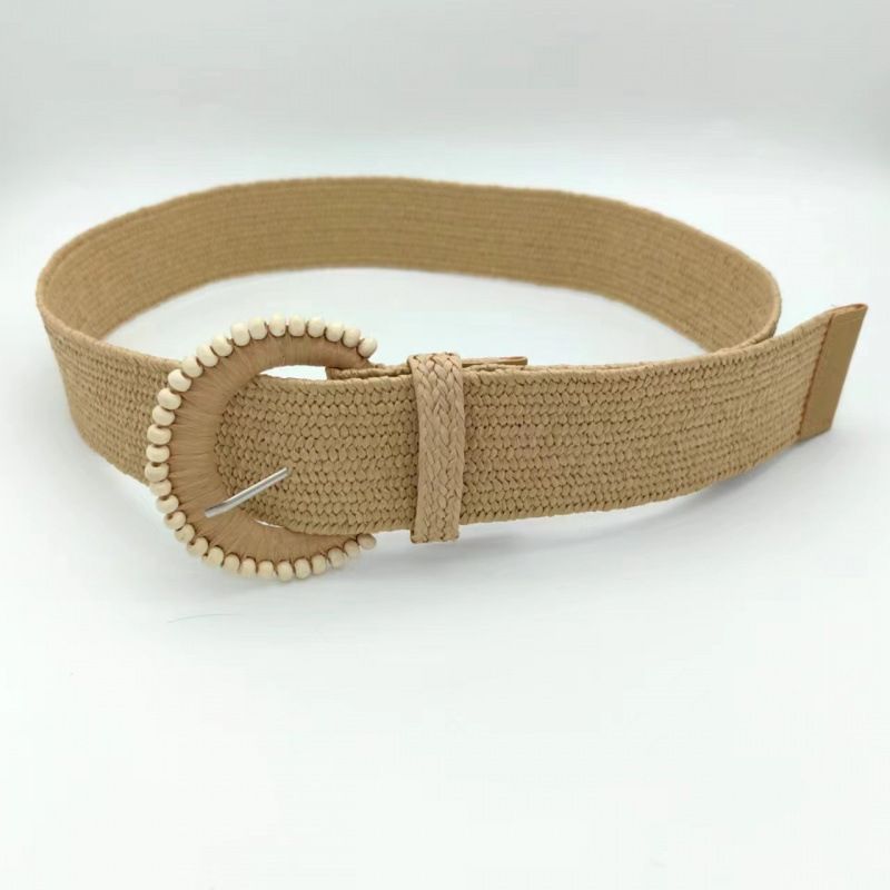 Beach Vacation Style Woven Button PP Grass Woven Women's Decorative Belt Personalized Fashion and High Sense Women's Belt