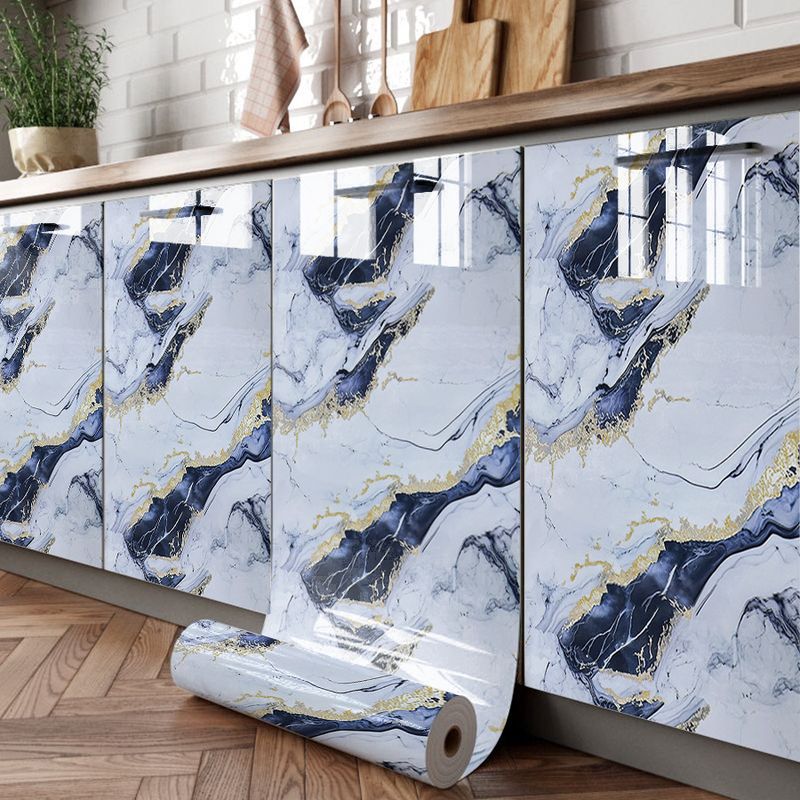 Blue Gilded Waterproof PVC Self-Adhesive Wallpaper Kitchen Countertop Cabinet Bedroom Living Room Wall Decoration Renovation