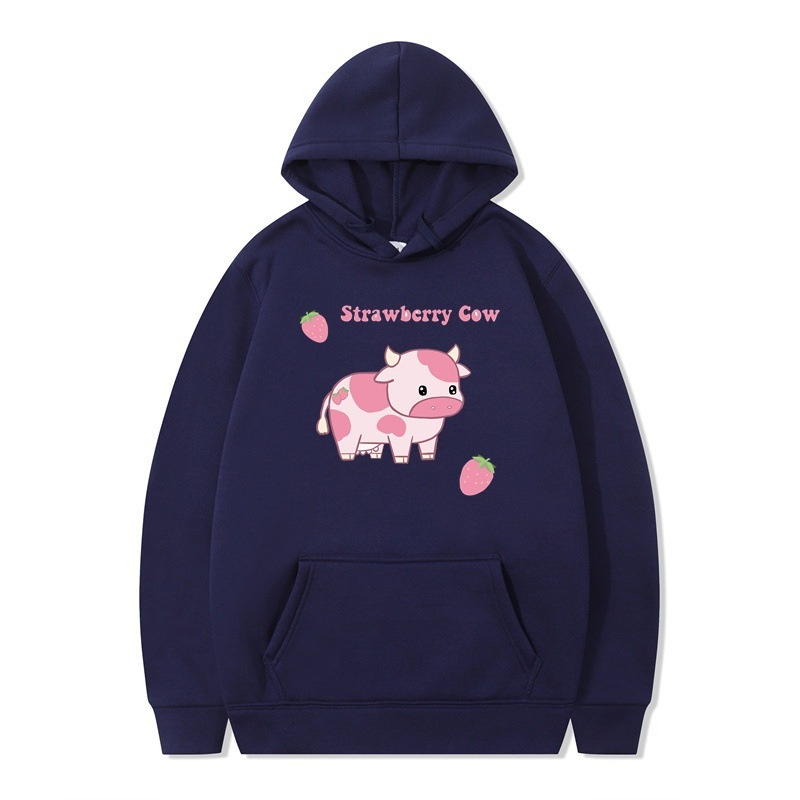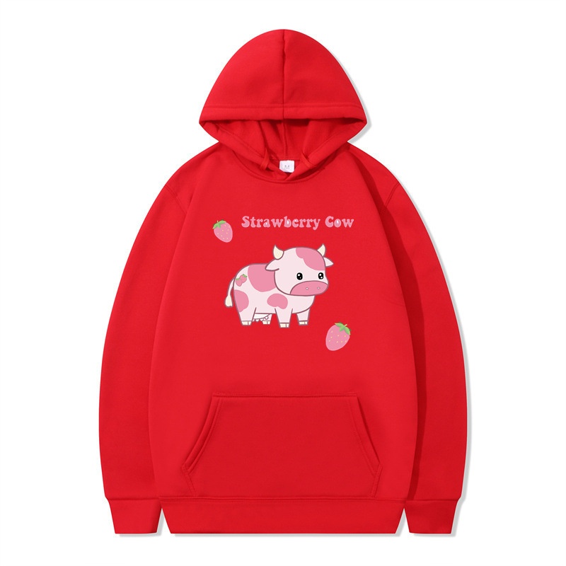 boy 2024 Cross-Border Foreign Trade Autumn Winter New Strawberry Milk Sweatshirt Long Sleeve Hoodie Harajuku Style Unisex