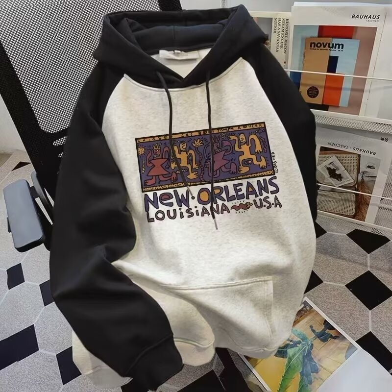 boy American Style Hooded Sweatshirt For Men, Autumn And Winter, Trendy Brand, Plus Size, Fleece Lined, Warm, Loose Fit,