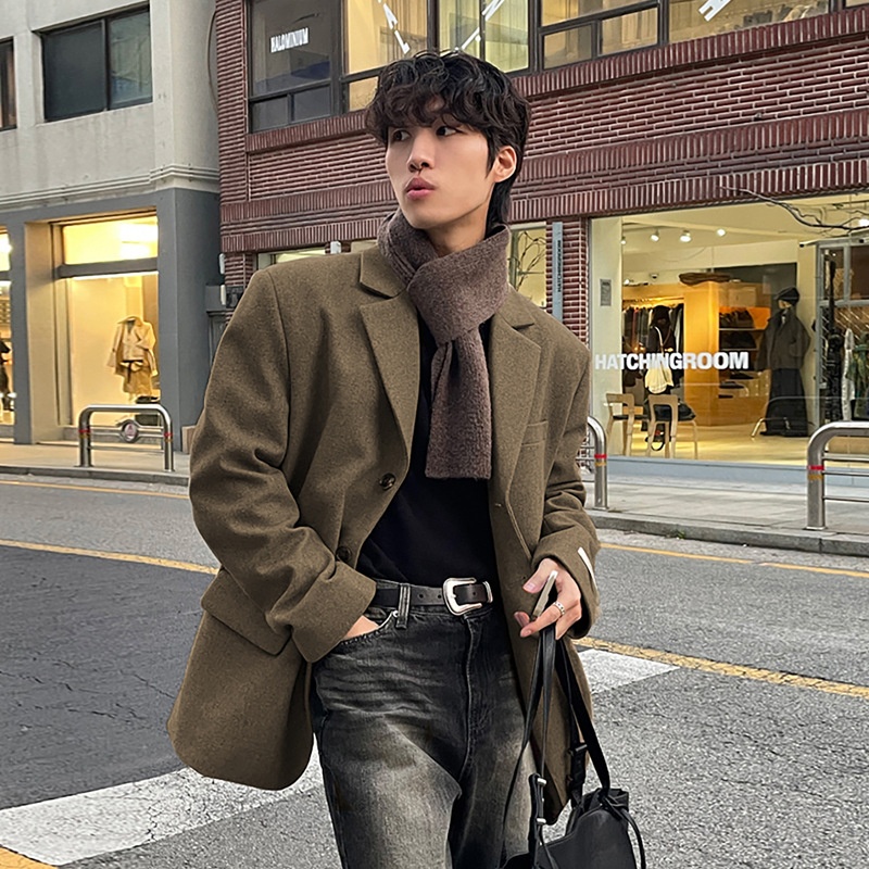 boy Boy ASCLO Korean Version Autumn Winter New Men's Short Old Money Style Trendy Handsome Versatile Suit Wool Coat