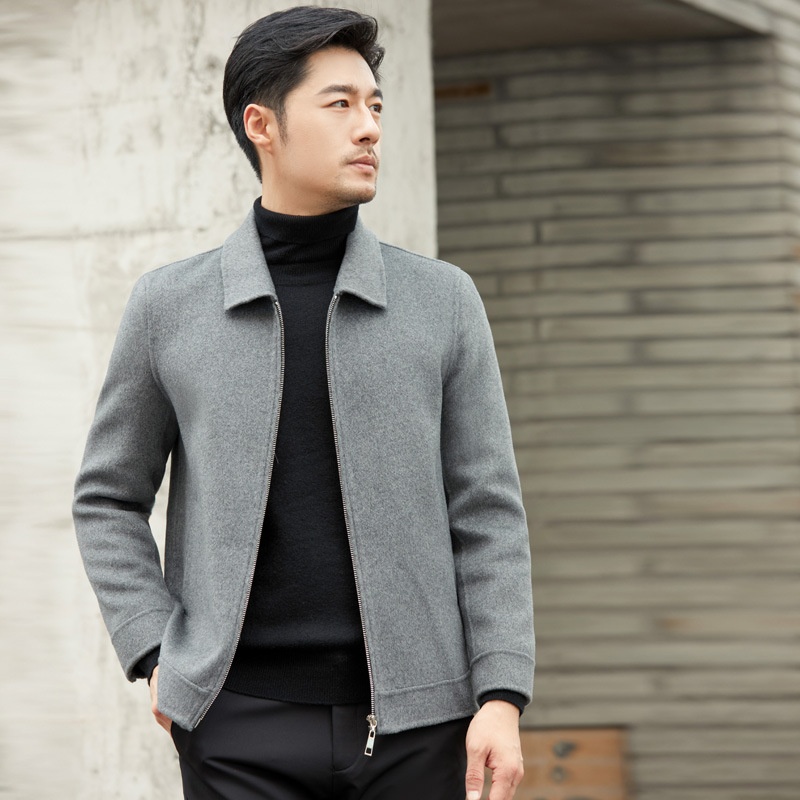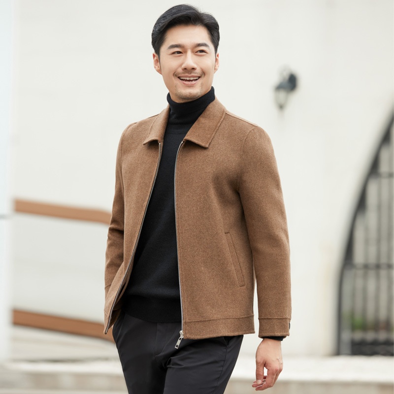 boy Boy Boy 2021 New Winter Coat Men's Turn-Down Collar Short Middle-Aged Double-Sided Wool Jacket